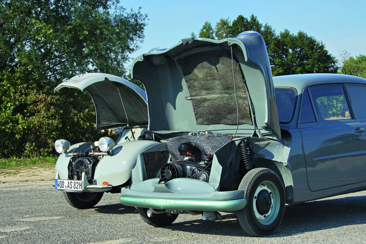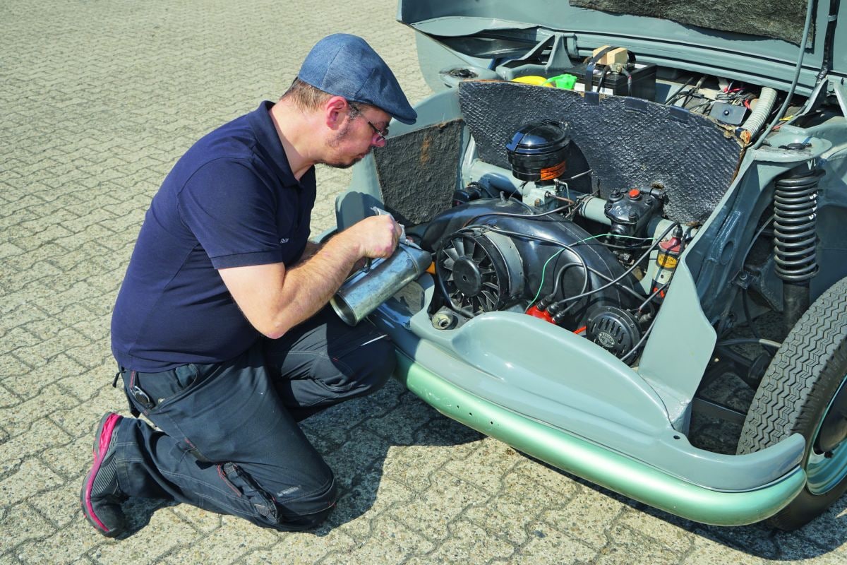 Vandaag kunnen we rijden met het bijzondere kind, het prototype met chassisnummer VR-282. Dat is mogelijk omdat Pablo Rother, een geschoold autotechnicus, de compleet verroeste uitlaat heeft nagebouwd. “Dat duurde ongeveer anderhalve week.” De rest was eenvoudiger: de afdichtingen van de stoterbeschermbuizen waren uit elkaar gevallen en Rother maakte nieuwe met behulp van reserveonderdelen. Hij verving de hoofdremcilinder en wielremcilinder en verving de kapotte verdelerkap door een aangepast Wanderer-onderdeel... veel meer was er niet nodig.