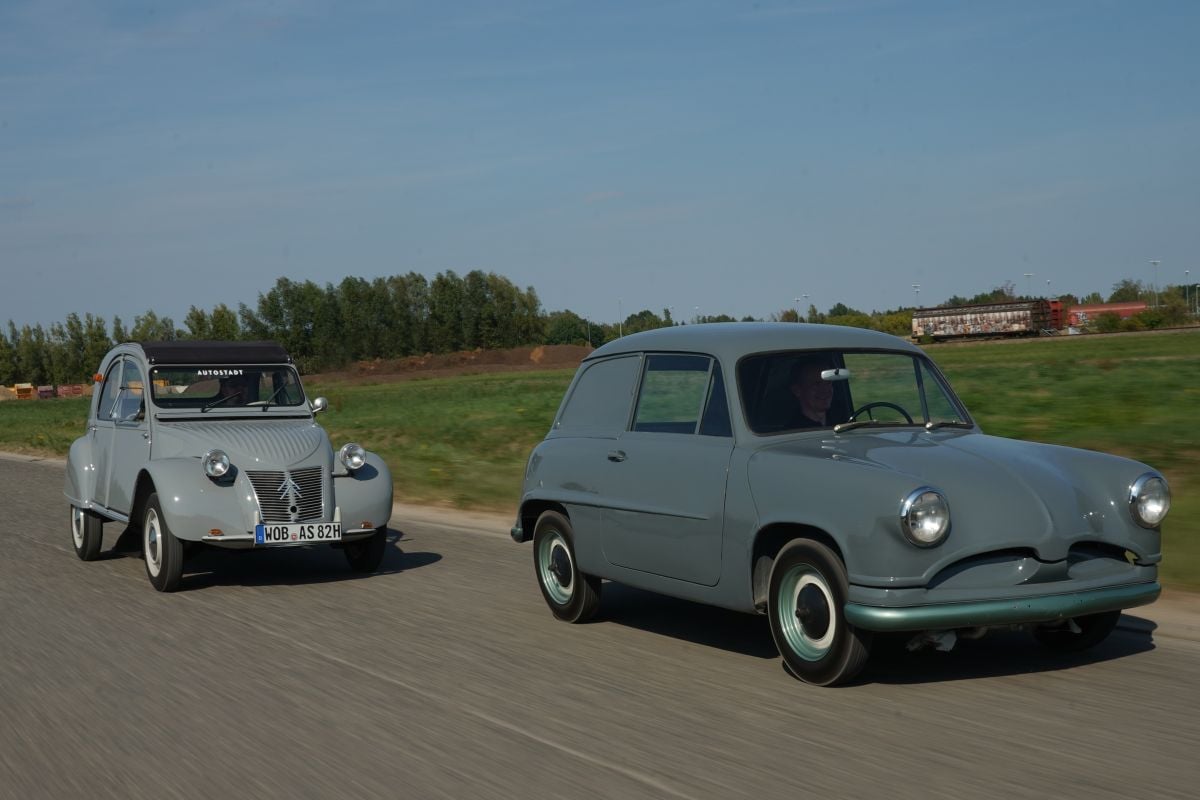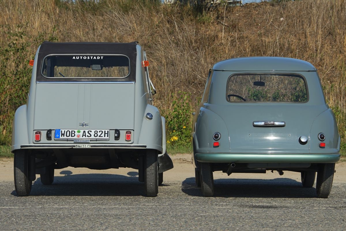 En hoe verhoudt hij zich tot de Eend? Voorin biedt de VW 6,5 centimeter meer schouderbreedte en acht centimeter meer zitbreedte; achterin steken de wielkasten van de VW echter naast de zitbank uit, zodat schoonmoeders met brede heupen beter voorin kunnen gaan zitten. De knieruimte achterin de Eend is ook een halve klasse beter: de Fransman heeft acht centimeter meer bewegingsvrijheid te bieden aan de benen van zijn achterpassagiers. De EA 48 is 75 kilo zwaarder dan de Eend, maar hij heeft ook anderhalf keer zoveel vermogen, wat een merkbaar betere vermogen-gewichtsverhouding oplevert.