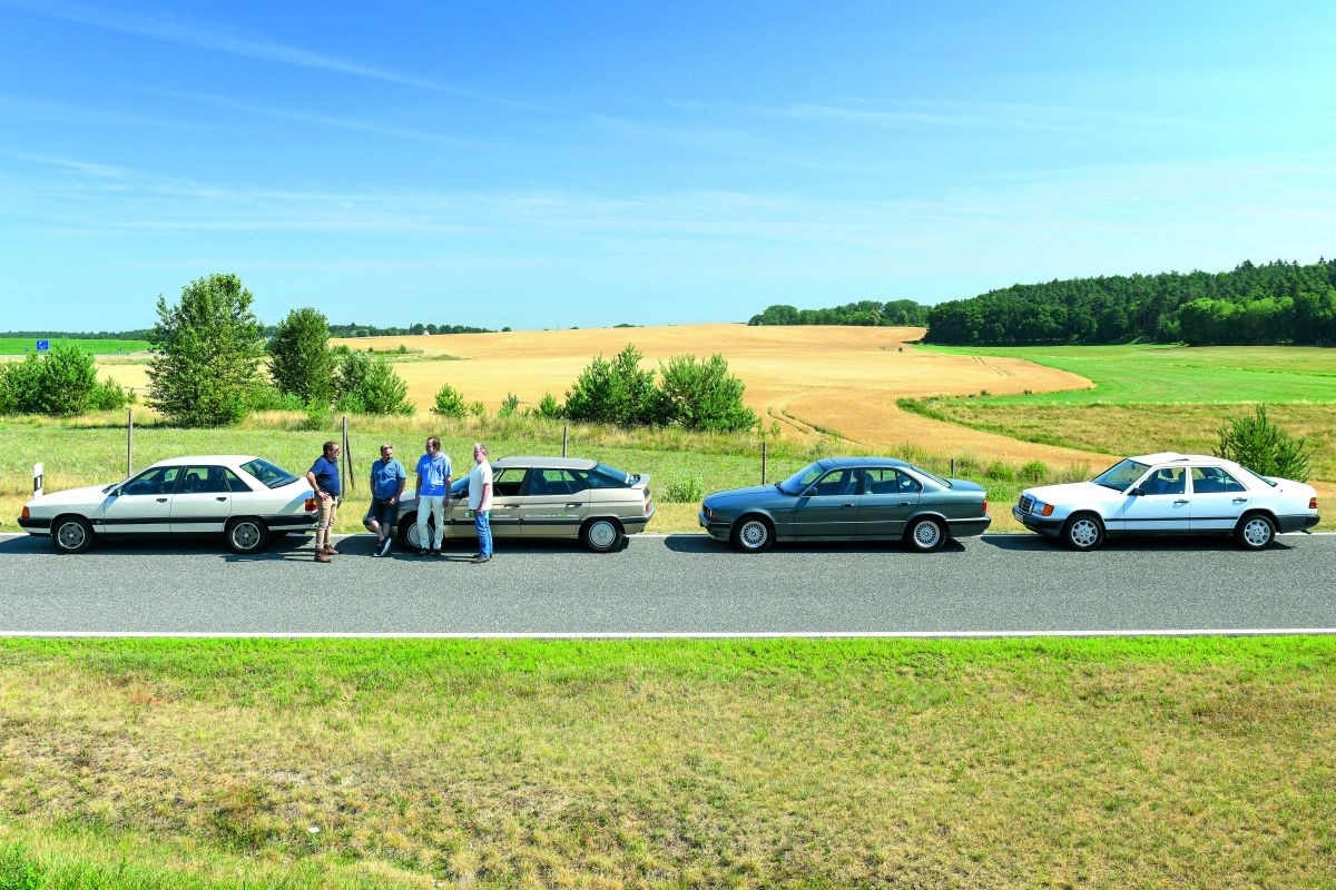 Anno 2023 (de test is gedaan in augustus 2023) is het nog niet zo eenvoudig om geschikte auto’s te vinden voor de nabootsing van de test van 1990. We willen natuurlijk met dezelfde auto’s op pad. De Citroën XM Turbo D12 maakt toevallig deel uit van de klassieke duurtestvloot van AutoBild Klassik, maar vervolgens wordt het lastig. Door het intensievere gebruik in het verleden zijn klassiekers met dieselmotor moeilijk te vinden. Toch is Sven Buchholz, inwoner van Hamburg, in het bezit van een geschikte handgeschakelde BMW 524td. Na enig zoeken vinden we ook een van de weinige overgebleven Audi’s 100 TDI (Typ 44). We moeten daarvoor naar Bad Liebenstein in Thüringen, waar eigenaar Masoud Araghi woont. Bij de zoektocht naar een Fiat Croma 2500 Turbo D met turbodiesel met indirecte inspuiting, een Ford Scorpio 2.5 TD en een Renault 25 Turbo D gooien we de handdoek in de ring. Die zijn simpelweg niet meer te vinden.