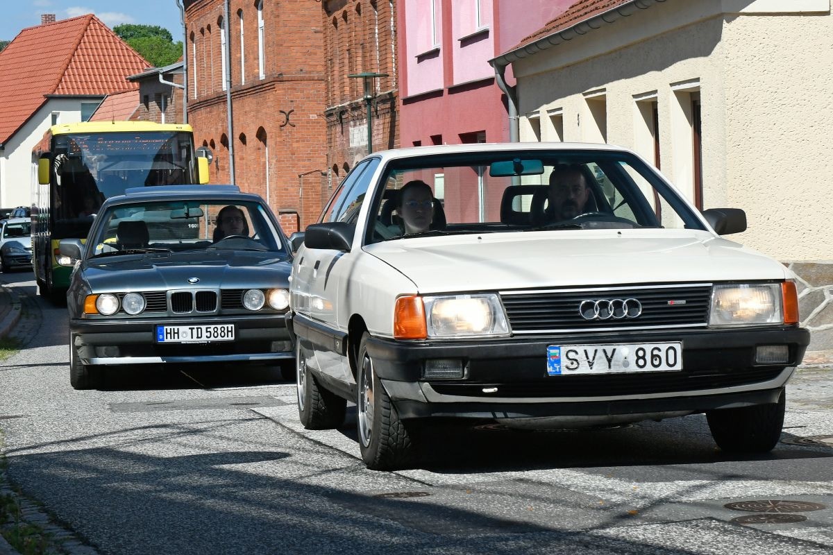 Daar hebben we vandaag geen tijd voor, want we moeten nog terug naar Hamburg. Na 617 kilometer bereikt het konvooi ’s avonds de Hanzestad. Iedereen is razend benieuwd naar de resultaten. We gaan weer naar het tankstation en tanken minutieus bij. De resultaten zijn in alle opzichten verrassend. Zoals verwacht blijft de Mercedes 300D achter bij de tegenstrevers, maar met een keurige zeven liter op 100 kilometer, ofwel 1 op 14,3, doet hij het verbazingwekkend goed. Wij hadden verwacht dat het verbruik ergens tussen de 1 op 12 en 1 op 12,5 zou liggen. Zal hij de BMW 524td naar de laatste plaats verdringen? In 1990 wist een vergelijkbare BMW met een gemiddeld verbruik van 7,4 liter per 100 km, wat gelijk staat aan 1 op 13,5, nauwelijks de 300 kilometer lange rit naar Schwerin te voltooien voordat de tank leeg raakte. Bij de 2023-editie van deze rit weet hij zich met een volle liter per 100 kilometer te verbeteren en eindigt hij op de derde plaats met 6,4 liter per 100 kilometer (1 op 15,6). Dat is uitstekend voor een zescilinder.