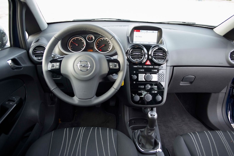 en kleur hebben behoorlijk wat impact. De middenconsole is overzichtelijk, alleen zit die wat te ver van je vandaan, waardoor je uit je stoel moet komen om sommige bedieningsknoppen te bereiken. Minder enthousiast zijn we over de ergonomie van de Corsa. Zo zijn de knoppen voor de bediening van de radio op het stuur te dicht tegen de rand geplaatst, waardoor je ze soms onbedoeld aanraakt met de muis van je hand en de audio-installatie vervolgens een andere zender begint op te sporen.