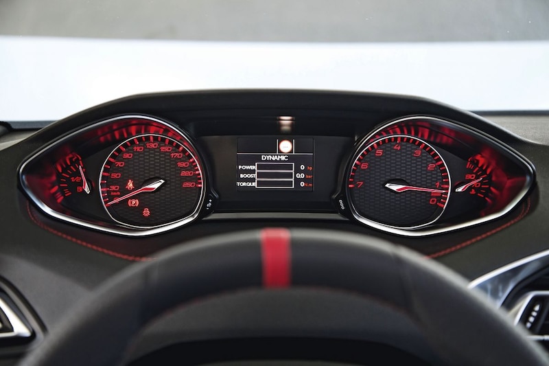 Op het circuit laat de 308 GTi zien dat er beslist geen sprake is van 'veel geschreeuw, weinig wol'. In bochten bijt de aangedreven vooras zich in het asfalt, waarbij het torsen-differentieel ervoor zorgt dat het wiel aan de buitenzijde van de bocht meer koppel krijgt toebedeeld dan het binnenste wiel. Bij het uitkomen van de bocht is dat een groot voordeel. Ondanks het sportieve karakter is de 308 GTi volgens Peugeot een bescheiden innemer. Volgens het merk bedraagt het gemiddelde verbruik 6,0 liter op 100 kilometer, ofwel 1 op 16,7. In de praktijk kun je daar alleen maar van dromen, daarvoor daagt deze auto je te veel uit. Het maximumkoppel is volgens de specificaties beschikbaar van 1.900 tot 5.000 toeren, maar gevoelsmatig gaat de 1,6-liter turbomotor pas bij zo'n 2.500 tpm lekker aan de slag. Bij 6.000 tpm wordt vervolgens het maximale vermogen geleverd, terwijl de begrenzer ingrijpt bij 7.500 tpm.