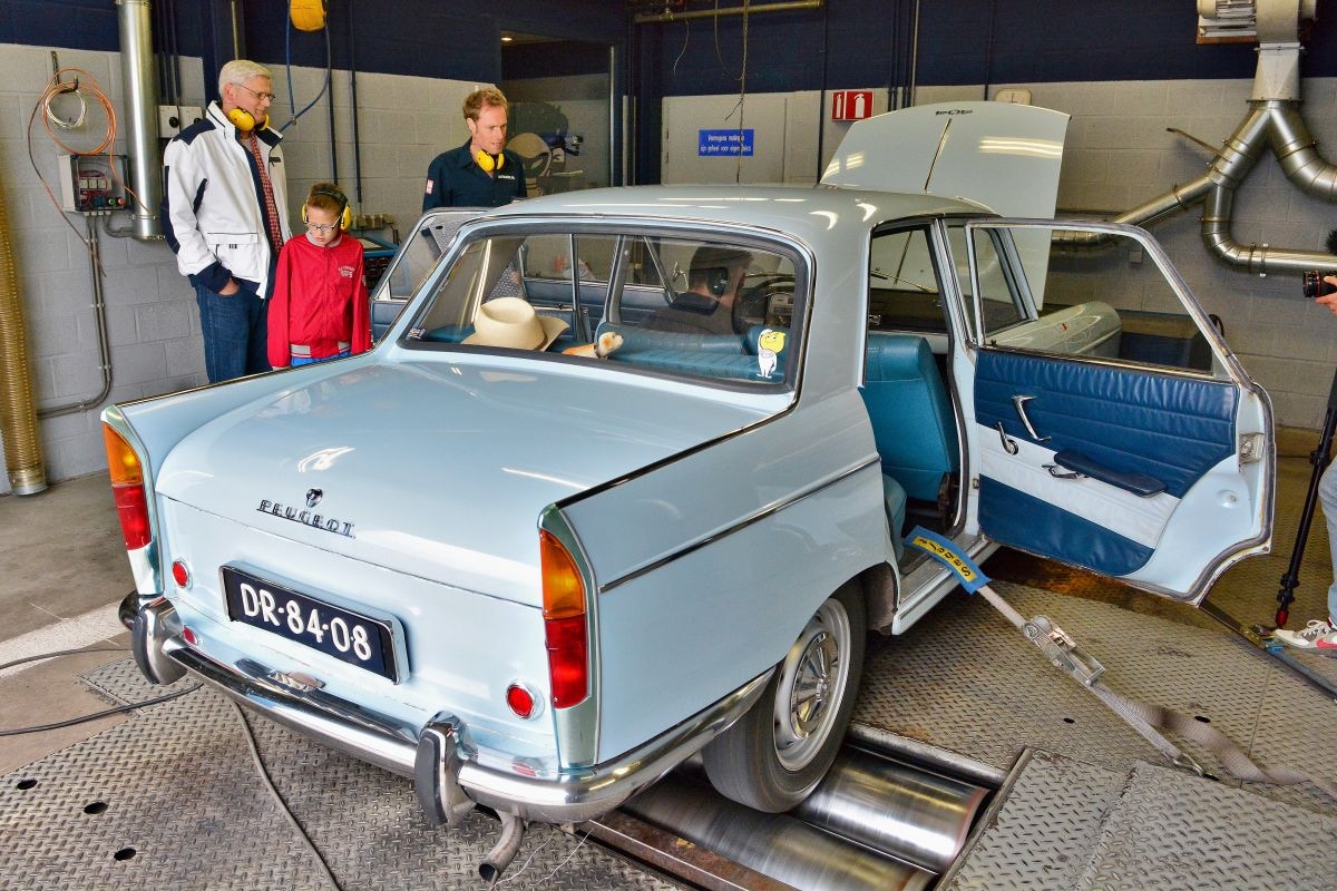 Bovenstaande bevindingen zijn zó eensluidend dat het bijna lijkt of ze over dezelfde auto gaan. En verrek, dat blijkt ook daadwerkelijk het geval. “O ja, er staat al een review over deze 404 op AutoWeek. Ik heb zelfs al contact gehad met de vorige eigenaar. Erg leuk!”, voegt de jongste eigenaar toe. Hij voegde nog wat toe aan de AutoWeek-historie door hem aan te bieden voor een meting op de rollenbank. Daar vinden we ook de verklaring voor de vlotte prestaties: de oude viercilinder levert nog altijd 65 van de 75 pk’s.