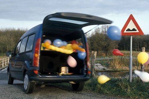Bij de Kangoo weet je onwillekeurig al wat je in de cabine zult aantreffen. En dat klopt. Veel hard plastic, maar dan wel uitgevoerd in verschillende kleuren. Het dashboard is simpel en logisch van opzet, maar het oogt heel aardig. Heeft ook te maken met de ronde uitstroomopeningen van de ventilatie/verwarming. Een grappig detail is dat de toeter op twee manieren is te bedienen. Via drukknoppen op het stuur of volgens oud Frans gebruik door het indrukken van de richtingaanwijzer/lichtschakelaar. De Kangoo doet niet al te zeer zijn best om het interieur verder al te veel op te vrolijken. Zo zijn de deuren allemaal bekleed met van dat ongezellige harde plastic. Alleen de stoelen zijn bekleed met stof. Wat er bij ons niet in kan, is dat Renault geen enkel bergvakje met een klep ervoor heeft. Vroeger wel, maar nu is er een airbag voor in de plaats gekomen en Renault heeft het niet nodig gevonden een andere oplossing te zoeken.