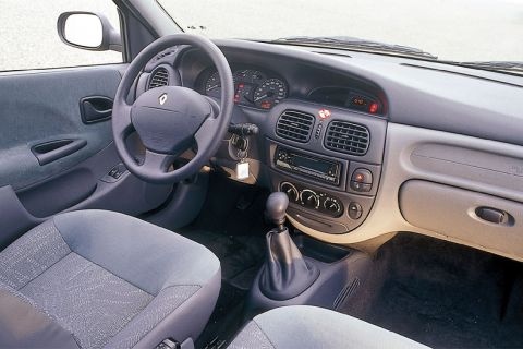 Laatste punt: de uitrusting. En tjonge, wat is die Mégane afgeladen! Twee airbags, side-bags, ABS, elektrische voorramen en spiegels, centrale vergrendeling met bliep, stuurbekrachtiging, boordcomputer, dakrails, een gedeeld neerklapbare achterbankleuning én zitting: het is allemaal standaard, en dan krijg je er in onze RXE-uitvoering nog eens airco bij ook! En dat voor nog geen 37 mille. Goedemorgen!