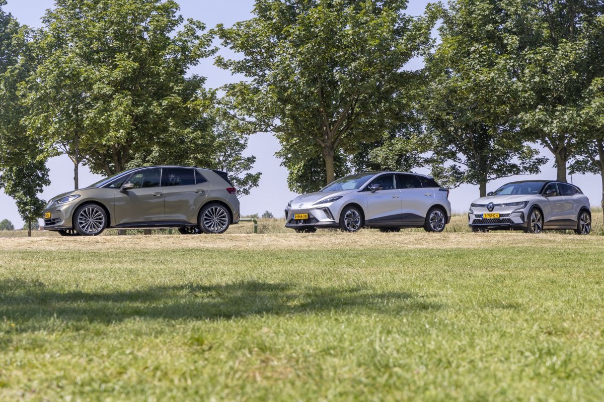 De MG maakt vanbinnen een heel andere indruk, want daar oogt de Chinees juist heel goedkoop. Dat is met de aanschafprijs in het achterhoofd zeker geen schande, maar wie net uit de Renault komt, bekruipt het gevoel een decennium of meer terug in de tijd te stappen. Vervelender is dat het interieur niet vrij is van hinderlijk gekraak, wat niet veel goeds belooft voor de degelijkheid op lange termijn. Verder werkt lang niet alles even gemakkelijk. Net als bij de Volkswagen start je door op de rem te trappen (met de sleutel op zak), maar anders dan in de Duitser vergt dat in de MG vaak een aantal pogingen. Het infotainmentsysteem is intussen erg druk en ook behoorlijk traag. De binnenruimte valt niet tegen. Cijfermatig is het allemaal wat minder dan bij de andere twee EV’s, maar in de praktijk zijn de verschillen ook weer niet zo groot.Eenmaal onderweg maakt de MG 4 een wisselende indruk. In eerste instantie eisen de rijhulpsystemen in negatieve zin een hoofdrol op, met name de rijstrookassistent. Die wil je op een weg met fietssuggestiestroken nog wel eens naar het midden van de weg dirigeren, wat met een naderende tegenligger best spannende situaties kan opleveren. Zet dat systeem uit en de MG 4 toont zich een bijzonder courante EV. Met een netto capaciteit van 61,7 kWh heb je het grootste accupakket en dankzij een opvallend efficiënte aandrijflijn kom je met deze auto ook nog eens het verst. De laadmogelijkheden zijn op niveau en door de recuperatie aan een naar eigen inzicht te configureren knop op het stuur te koppelen, rijd je bijna zonder te hoeven remmen.