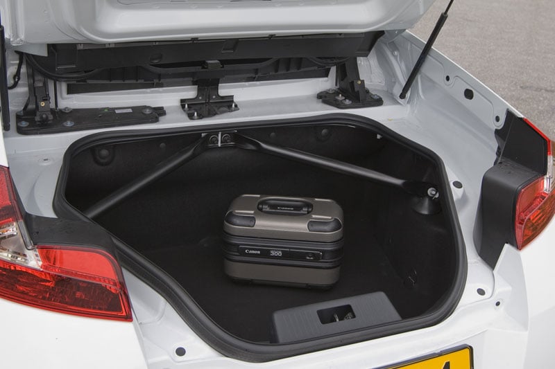 Eén ding is ons tijdens de week dat we met deze auto rondreden wel duidelijk geworden: je móet er een uitgesproken mening over hebben. De één vindt hem geweldig, de ander sabelt de Wind neer als spuuglelijk. Daartussen: niets. Feit is dat je in een heel apart autootje rijdt. En dan moet het meest aparte nog komen, want dat is zonder meer de dakconstructie. Het hele paneel draait 180 graden achterwaarts en verdwijnt daarna niet onder, maar ín de achterklep, als een soort sandwich. Dat heeft een paar grote voordelen ten opzichte van andere hardtops. Om te beginnen is het veel sneller; de Wind is in zo'n tien seconden open of dicht, reken bij de gemiddelde CC op ruim boven de twintig. Verder is het mechanisme veel lichter, ongetwijfeld minder storingsgevoelig en neemt het bovendien veel minder ruimte in. Nadeel is dat je met de brug en ruit achter je veel minder 'buiten' zit dan in een gewone cabrio of CC.