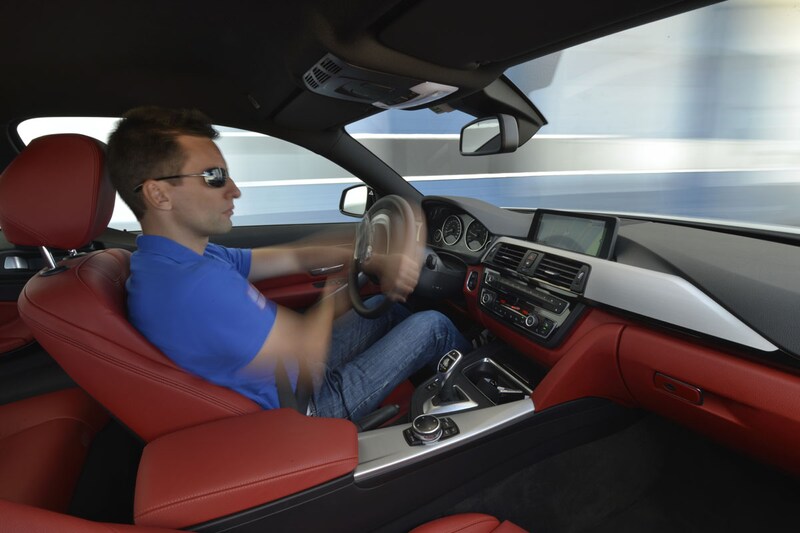 Deze gedachten gaan door me heen wanneer ik een fijne bochtige weg bestorm met een gloednieuwe 435i. Ik zit lang niet op de limiet en laat de banden niet kermen. Gebruikmakend van de extreme soepelheid van de zes-in-lijn turbomotor met 306 pk gaan we vloeiend van bocht naar bocht. In zo'n fijn heuvellandschap is het krijgen van een goede cadans in de auto bijna net zo bevredigend als hem op de limiet rijden. De 4-serie verbaast totaal niet. Hij is precies zoals je hem verwacht als je de huidige 3-serie goed kent. De woorden sedan en coupé hoeven we met de komst van de vierer (ja, dat wordt even wennen) niet meer te gebruiken ter onderscheiding. De auto is duidelijk iets comfortabeler dan de E92 3-serie Coupé, iets wat vrij logisch is in het licht van wat BMW met zijn 1-, 3- en 5-serie heeft gedaan. Ook deze zijn comfortabeler dan voorheen. Dit is zeker geen slechte zet voor de 4-serie. Ja, de auto heeft wellicht iets meer bodyroll dan de 3-serie Coupé die hij aflost (een A5 met sportonderstel ligt gevoelsmatig strakker), maar de dynamiek is zeker niet minder, vooral vanwege de prachtige balans in de auto. Hij is 26 mm langer dan de E92, en de wielbasis groeide met 50 mm. Verder is hij lager en breder. Allemaal zaken die de stabiliteit ten goede komen. Door de lange neus ligt de motor ver genoeg naar achteren om een gewichtsverdeling van 50-50 te creëren. En geloof ons, dat merk je wel degelijk aan de manier waarop onderstuur uitblijft. De zithouding is tegen het perfecte aan. Het stuur kan zeer ver naar je toe en de stoel kan ver omlaag. Je rechterhand valt automatisch om de pook waarmee je de achttrapsautomaat bedient. Deze volautomaat vinden we in alle 'nieuwe' BMW's, maar ook in Maserati's en Audi's. En niet zonder reden. De wijze waarop de transmissie zeer snelle schakelbewegingen combineert met soepele overgangen bij langzaam rijden, overklast een bak met dubbele koppeling. Die is wellicht nog net even sneller, maar offert daarvoor wel comfort op. Pas vanaf niveau M4 (dat wordt helemáál wennen straks) zouden we naar iets sportievers verlangen.