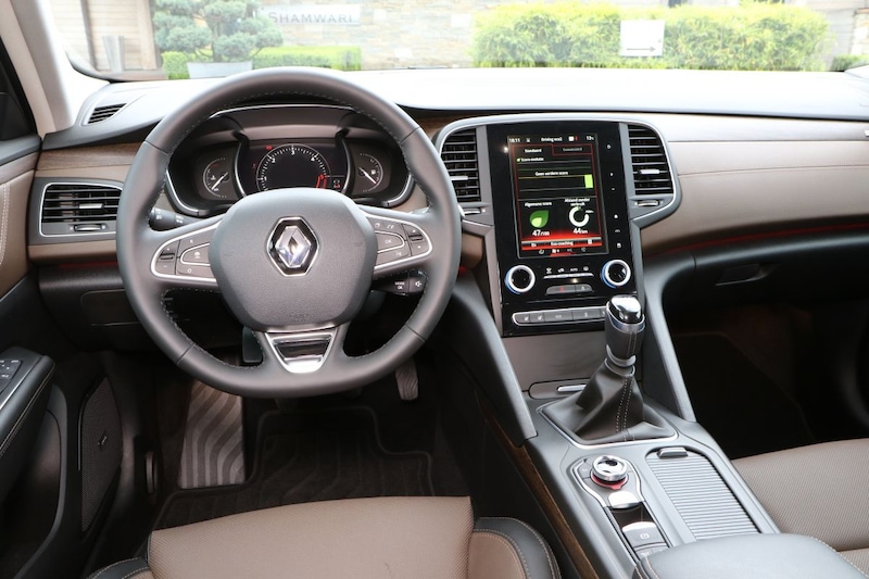 Voorin treffen we het - voor wie de sedan kent – bekende dashboard aan. Het is mooi ruim opgezet, fris en bijzonder vormgegeven en opgebouwd uit overwegend goede materialen. De duurdere uitvoeringen (wij rijden de Intens, één stapje onder de topper Initiale Paris) hebben een groot, staand kleurenscherm waar je alles op kunt instellen. De navigatiestructuur is vaak niet heel logisch en vereist daarom enige gewenning. De ene keer moet je iets op het scherm doen, dan weer zit een functie onder de multifunctionele knoppen tussen de stoelen. De centrale klok is digitaal en afhankelijk van de voertuiginstellingen ingedeeld. In sport is het een grote toerenteller met in het midden een digitale snelheidsmeter.