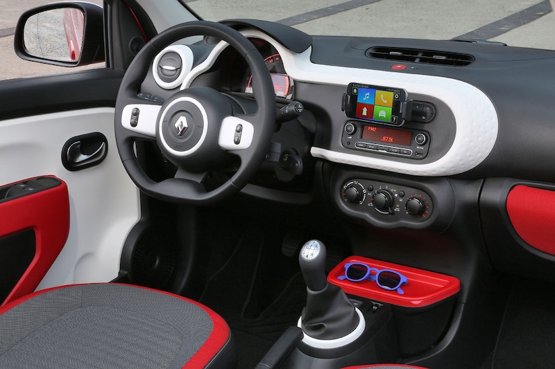 Naast twee motoren is de Twingo aan te kleden met drie uitrustingsniveaus: Authentique, Expression en Dynamique, waarbij de turbomotor er alleen met die laatste twee is. De prijslijst begint bij € 9.990 voor het basismodel, maar Renault verwacht in Nederland dat de meeste klanten voor de Expression zullen opteren. Die kost € 1.000 meer en heeft onder meer elektrische ramen, multimediasysteem met bluetooth en centrale deurvergrendeling met afstandsbediening. De topuitvoering kost nog eens € 1.800 extra en voegt onder meer airco en lichtmetaal toe. De TCe 90 vergt een extra investering van € 1.200. Ga je nog aan de gang met leuke stickers en kleuraccenten, dan kan de prijs dus nog best oplopen. Zo concurreert de Twingo niet alleen met de meer rationele auto's als de Up! en i10, maar ook met de hippe Fiat 500. En allemaal krijgen ze een flinke kluif aan de eigenwijze Renault.