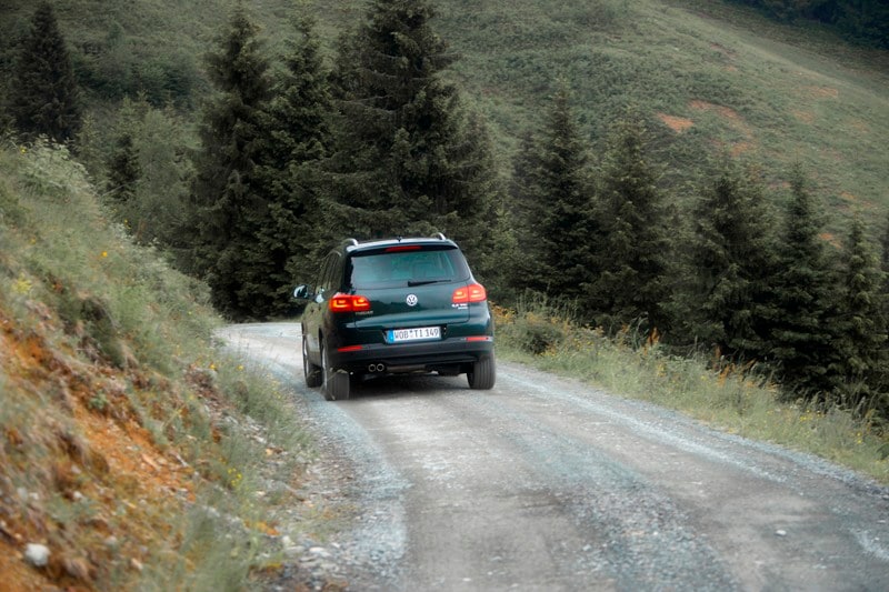 De TDI is lekker krachtig, maar het duurt wel even voordat hij op stoom is. Helemaal onderin geeft hij amper thuis, vervolgens komt de volle kracht er vrij abrupt in, waardoor je echt even aan de auto gewend moet zijn voordat je koppeling en transmissie vloeiend bedient. De besturing is redelijk licht, maar zeker niet te licht en dankzij de permanente vierwielaandrijving is deze Tiguan prettig neutraal in de bochten. Hij neigt wel wat tot deinen en het onderstel voelt wat week aan, maar dat los je in deze uitvoering op door de knop voor de elektronische demping op sport te zetten. De auto wordt merkbaar harder en dat karakter past wat ons betreft wat beter bij deze auto. Pluspunt van deze motorisering is dat hij maarliefst 2,5 ton mag trekken, en dat maakt dit een uitstekende auto om voor een fors uitgevallen caravan of een paardentrailer te binden.