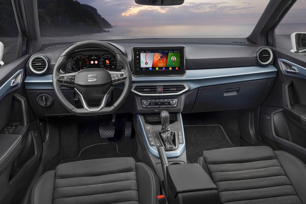 Aan de binnenkant krijgt de Arona dezelfde upgrades als de gefacelifte Seat Ibiza. Het multimediascherm wordt iets groter en krijgt een hogere, meer zwevende plek op de middenconsole. Bovendien gaat de kwaliteit van de gebruikte materialen er merkbaar op vooruit. Ook heeft de auto nu het multifunctionele stuur dat we kennen van grotere Seats. De lijst met veiligheidsopties is daarbij uitgebreid, zodat de Arona nu naar keuze ook de beschikking heeft over onder meer ACC met lanekeeping, dodehoekdetectie en automatisch grootlicht.