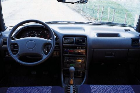 De instap voorin is dankzij de grote portieren riant. De stoelen zijn stevig en hebben een lichte kuipvorm die voor een goede zijdelingse steun zorgt. Voor de bekleding is gekozen voor een stroef materiaal, dat de inzittenden goed 'vasthoudt'. Bovenop de rugleuningen staan lekker hoge hoofdsteunen. Ze dragen samen met de in hoogte verstelbare gordels hun steentje bij aan de veiligheid van de mensen voorin. De instrumenten zijn goed te zien. Dat is niet het geval met de verschillende schakelaars. De Justy is ruim uitgerust en biedt onder meer: startonderbreker, zoemer voor vergeten verlichting, contactsleutel-alarm, en make-upspiegeltje. Drie handgrepen voor de passagiers, een afsluitbaar dashboardkastje en een van binnenuit te ontgrendelen achterklep ontbreken net zo min als balken in de portieren en een derde remlicht.