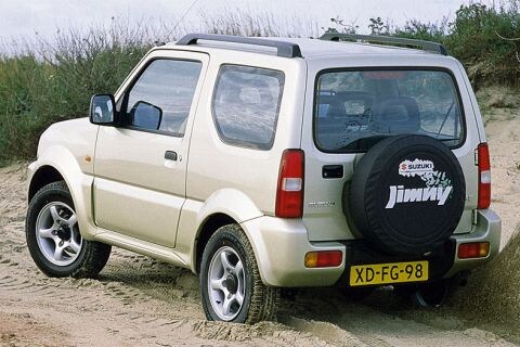 Met z'n futuristisch aandoende, afgeronde carrosserie ziet de Suzuki Jimny eruit als zo'n luxe terreinwagentje; 'n speeltje dat eigenlijk veel te mooi is om de modder in te duiken of door het zand te ploegen. Maar in wezen is de Jimny een pur sang terreinwagentje. Zo is z'n koetswerk gemonteerd op een stevig ladderchassis. Ook heeft hij starre assen. Zulke assen staan garant voor een goed contact met de bodem. Vering en demping worden verzorgd door apart van elkaar gemonteerde schroefveren en schokdempers.