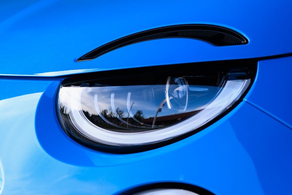 Het bovenste deel van de koplamp brandt bij de Abarth niet mee. Booskijkers dus!