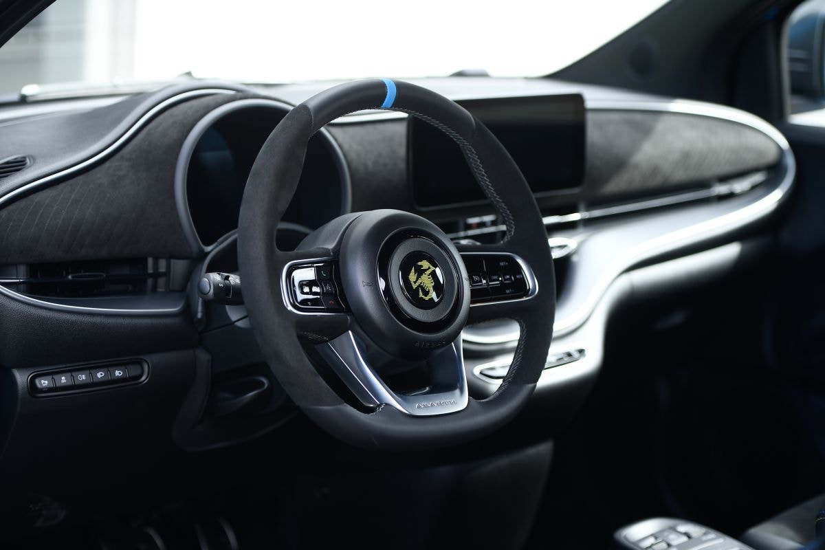 Jazeker. Abarth is bij ons weten de eerste autofabrikant die een EV laat klinken als een benzineauto. Ergens is dat natuurlijk erg vreemd, omdat iedereen weet dat het gebrul van onder de achterbumper volledig kunstmatig is. Het komt van wat Abarth passend een ‘Sound Generator’ noemt en klinkt doelbewust zoals de ‘oude’ Abarth met benzinemotor ook klinkt. Althans, ongeveer. Wie goed luistert, hoort al snel dat het nep is, al kunnen omstanders door het gebrul zomaar op het verkeerde been worden gezet. Verdorie, nu vinden we het stiekem toch leuk. De ‘Sound Generator’ reageert ook bij stilstand op het gas, zodat je net als bij een benzineauto kunt 'revven'. Wat het kunstmatige geluid niet doet, is een poging om versnellingen na te bootsen. De Abarth trekt dus met één lange, ononderbroken brul naar hogere snelheden. Wie het zat is, kan het systeem uitzetten. Dat gaat via een wat onhandige route in het digitale instrumentarium, maar dan is de Abarth ook volledig stil. De basisversie heeft het überhaupt niet, dus dat scheelt weer een dilemma.