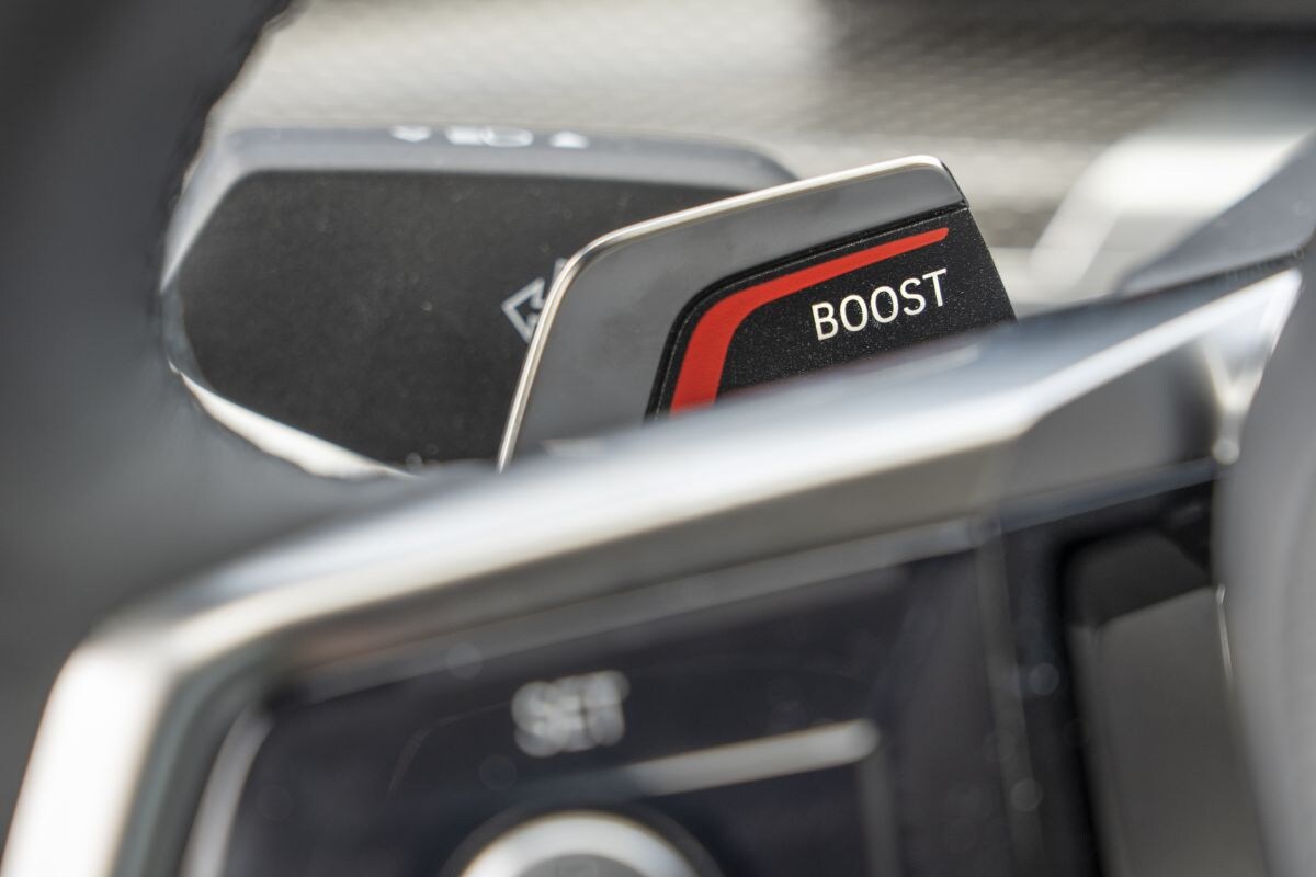 In de BMW zijn het instrumentarium en het beeldscherm van het multimediasysteem ondergebracht in de ‘Curved Display’. Met name het centrale scherm heeft een drukke lay-out, dat we associëren met een spelcomputer. Gelukkig heeft BMW de centrale, nog altijd onvolprezen iDrive-bedieningsknop ongemoeid gelaten, en dat komt het bedieningsgemak van de i7 beslist ten goede. Er zit immers nogal wat techniek in de auto! BMW heeft er wel voor gekozen om de instellingen van de airco te integreren in het multimediasysteem. Wij hadden liever fysieke knoppen gezien.