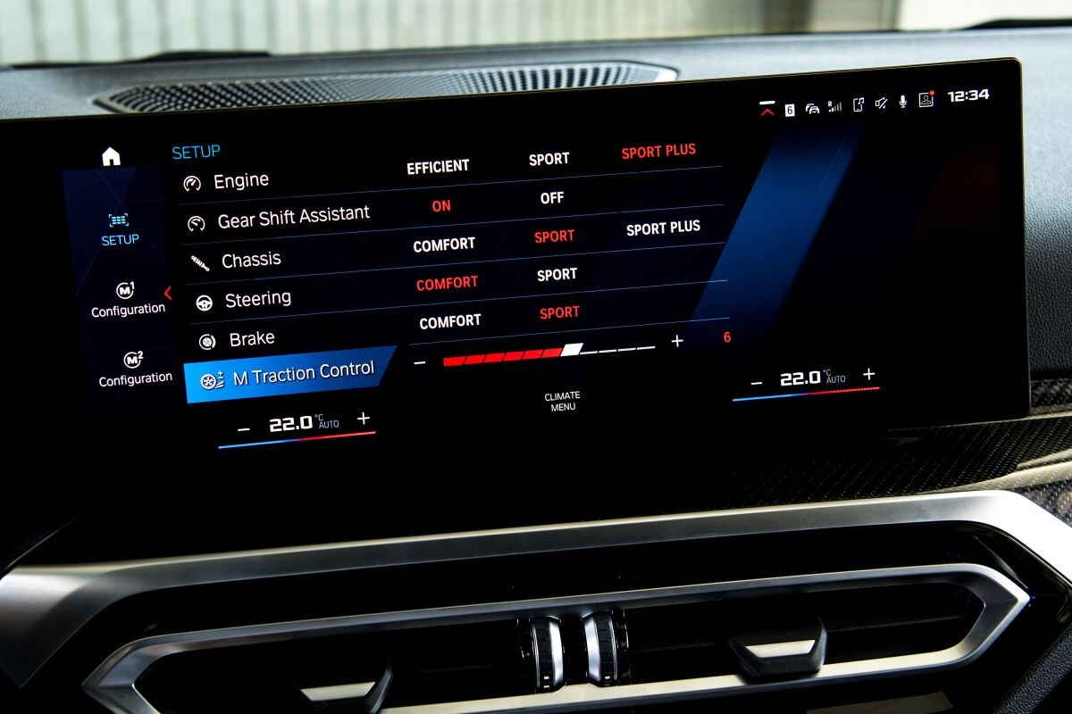 Als je ze na elkaar rijdt zeker. We deden bij het test-event ook een rondje BMW M3 Touring Competition. Wat in de M2 meteen opvalt is de hogere intensiteit. Alles komt directer door en over, de krachten die vrijkomen op de achteras die zich dichter achter je bevindt dan in de grotere M-broers, de uitlaat die door de kortere afmetingen minder ver achter je zit. De auto is heel direct, je voelt de snelle gasrespons als het ware nog beter, ook omdat er meer onrust in de M2 zit. De achterkant heeft gigantisch veel grip maar je kunt hem ook heel makkelijk om laten komen, de driftanalyse in de display nodigt daar zelfs toe uit. De vele instelmogelijkheden binnen de rijmodi road, sport en track zijn gelukkig ook op te slaan in twee voorgeprogrammeerde settings, die je via de twee rode knoppen in het stuur direct kunt activeren. Zo heb je altijd je favoriete setup direct onder handbereik.