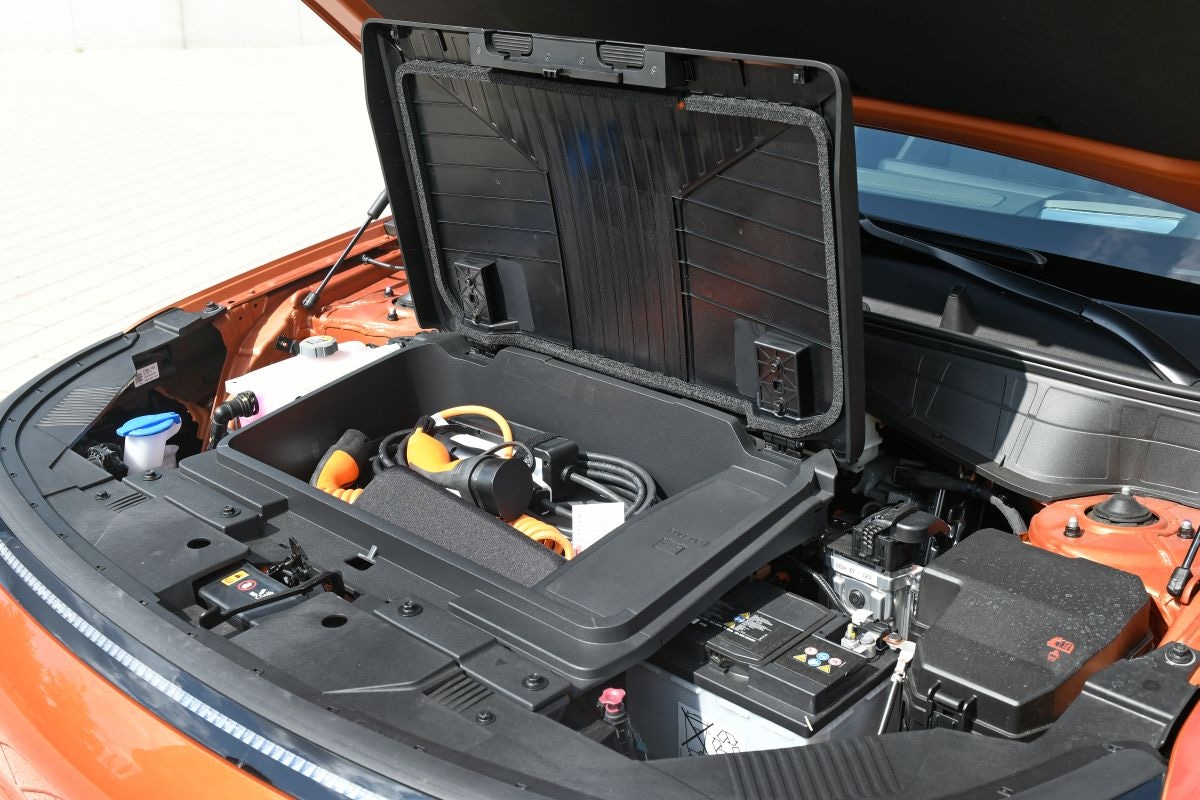De elektrische versie heeft aan de voorkant een frunk, een handig opbergvak voor de laadkabel.