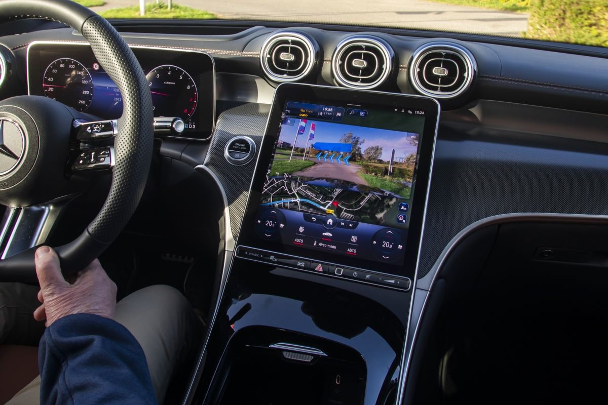 Het formaat van de beeldschermen is enorm. Er moesten namelijk een heleboel functies worden geïntegreerd. In het centrale touchscreen zitten alle icoontjes echter op een heel doordachte plaats, waardoor de bediening eenvoudiger is dan je in eerste instantie zou verwachten. Bovendien werkt de software razendsnel, ook dat komt de functionaliteit ten goede. De bediening van de airco werkt via het scherm, maar de verschillende ‘knoppen’ blijven altijd zichtbaar, zodat je zelden lang hoeft te zoeken. Ook het instrumentarium en de head-up display zijn zeer compleet uitgevoerd. Het ziet er allemaal erg mooi uit en functies als augmented reality-navigatie zijn daadwerkelijk van toegevoegde waarde.
