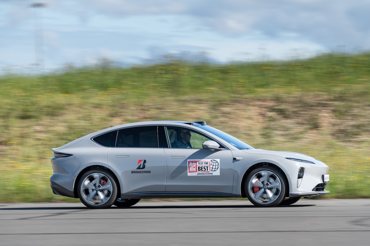 We konden de auto kort rijden op een event van onze Duitse collega’s van AutoBild. Dat verklaart de wilde bestickering van de auto, trouwens, want het event vond plaats op de testbaan van Bridgestone en dat bandenmerk wilde graag goed in beeld komen. We reden hem op een afgesloten circuit en maakten derhalve nog geen uitgebreide test. Die volgt binnenkort, als we de auto in Nederland kunnen rijden. De eerste indruk is dat hij behoorlijk vlot is. Via het menu met de rijmodi kies je een rijstand ergens tussen economisch en sportief, en aan de hand van die keuze wordt het maximum vermogen bepaald – en dus de acceleratietijd. Hij kan verrekte snel zijn, of gewoon vlot op een relaxte manier. Op het Mickey Mouse-circuitje staat hij aardig zijn mannetje. Hij voelt niet al te zwaar, gaat redelijk neutraal de bochten door en het enige dat opviel is dat het zwaartepunt voor een auto als deze redelijk hoog lijkt te liggen. Dat geeft in combinatie met de al wat hoge zitpositie het gevoel dat de ET5 minder sportief is dan de Tesla.