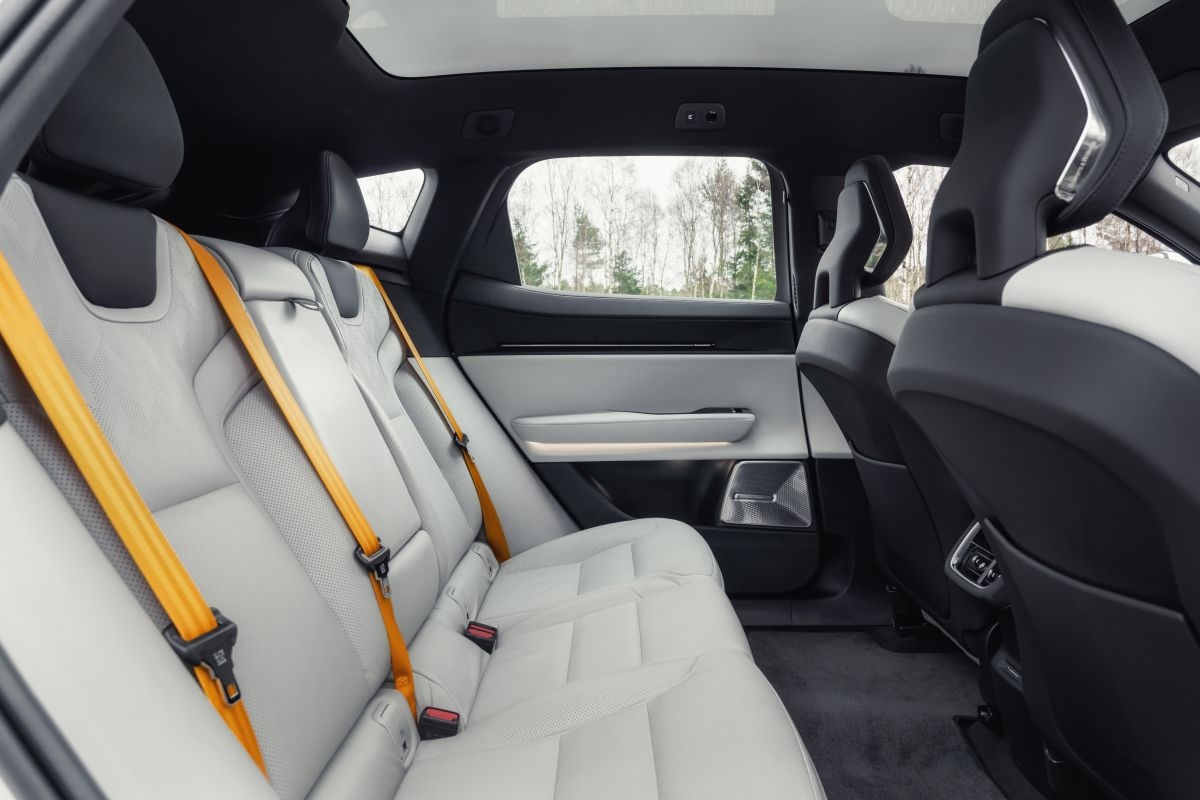 Doordat de Polestar 3 een vijfzitter is (en geen zevenzitter zoals de Volvo EX90) heb je ook achterin genoeg beenruimte.
