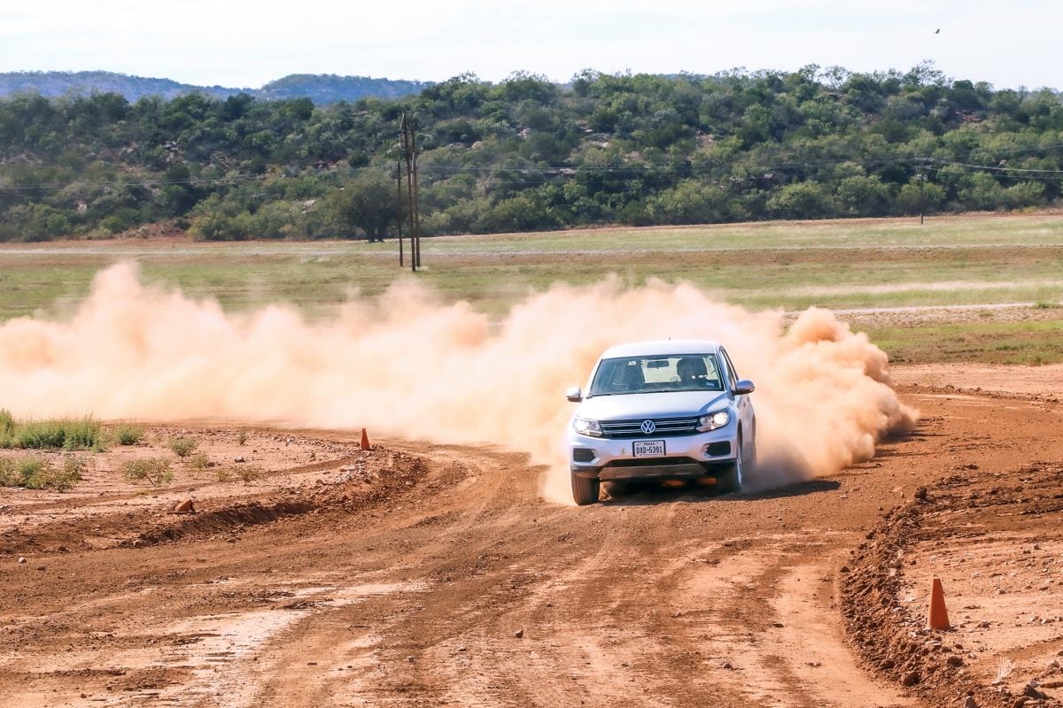 Rijgedrag op gravel: Op het bijna twee kilometer lange testparcours op de Texaanse prairie zijn doorslaggevende verschillen te zien. Pirelli en Hankook bieden de beste balans, de banden van Nexen en Toyo zijn minder evenwichtig.