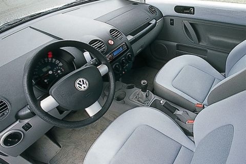 Het goede nieuws is dat je in de New Beetle op zich heel redelijk zit (op grote en vrij zacht uitgevoerde stoelen) en eventuele koters achterin een mooi plekje zullen vinden. Voorlopig, tenminste. Als hun lengte toeneemt, zal de dakrand namelijk rap naderen. Een volwassen persoon zit met zijn hoofd tegen de achterkant van de dakrand en de ruit geklemd.