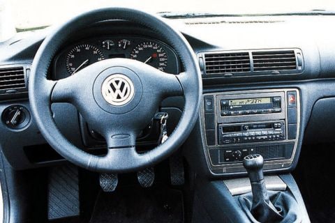 Dat geldt ook voor het interieur. Voornamelijk omdat importeur Pon de test-Variant heeft uitgerust met het Trendline-pakket (dik 2000 piek). Daarmee ziet het interieur van de Passat er wat flitsender uit dan in standaard trim. Want bij VW is het normaal zakelijk, donker, maar vooral degelijk. Bij de Trendline geven vooral het dikke, met leer beklede driespaaks stuurwiel, de namaak-aluminium accenten in dashboard en portieren, en de fors bemeten sportstoelen een andere indruk dan de standaardversie. De plaatsing van de bedieningsorganen in de Passat is zoals 't hoort.