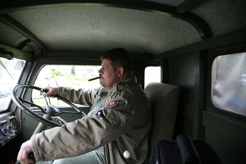 Het tweede deel van de route bracht ik door aan de zijde van Joost van den Berg, eigenaar van een veel modernere Nekaf. Zo'n Jeep-achtige lijkt op de aloude Willy's, maar is het niet. Compleet met baret op zijn hoofd en de broek poffend in originele legerkisten, past Joost helemaal in het plaatje achter het stuur van zijn tot in het detail correct uitgedoste voertuig. Een radio, helmen, camouflagenetten, voorraadkistjes, het ligt allemaal aan boord. Dit is folklore, maar dan op een hele stoere manier. Naarmate de route vordert begin ik me steeds meer af te vragen wat ik hier nou van moet vinden. Wat is nou toch de lol van het leger? De duivel in me zou deze mannen kunnen betitelen als overjarige kinderen die zo nodig een levensgroot speeltje willen hebben en boos zijn dat ze volgens de Nederlandse regels geen replicageweren mogen plaatsen. Maar dat zijn het niet. Gelukkig geeft Joost, die zelf ook decennialang actief was bij Defensie, even later zelf het antwoord: "Dit is meer dan zo maar een stukje rijden. Voor mij persoonlijk is het belangrijk om deze auto's aan het publiek te tonen. Vooral aan de jeugd, voor wie het tegenwoordig inderdaad alleen maar stoere dingen zijn waar vroeger 'helden' in reden. Dat waren het zeker niet, deze voertuigen hebben stuk voor stuk heel wat ellende gezien. Ik wil de toeschouwers langs de weg duidelijk maken dat we blij mogen zijn dat we dit soort voertuigen nu kúnnen bewonderen, zonder dat je hoeft te vrezen voor je leven." Waarvan akte. Geniet van je dag.