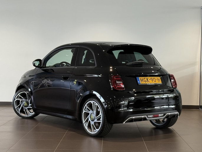 Abarth heeft de auto opnieuw uitgevonden. De volledig elektrische én bijzonder sportieve Abarth 500e is duurzaam, maar biedt tegelijk veel rijcomfort en geweldige prestaties. Een elektrische auto is echt niet meer alleen voor korte ritjes. Het rijbereik van deze auto biedt voldoende ruimte voor uw dagelijkse ritten. Daardoor kan het opladen vaak 's nachts gebeuren. Stoelverwarming maakt het leven in deze auto aangenaam op koude en winterse dagen. Overdag een weidse zichthoek en 's avonds het lichtspel in de binnenruimte: dat geeft het glazen panoramadak! Tot de voorzieningen van deze auto behoren 18 inch lichtmetalen velgen, Full LED koplampen, een dakspoiler, extra getint glas, een in delen neerklapbare achterbank en LED-achterlichten.
