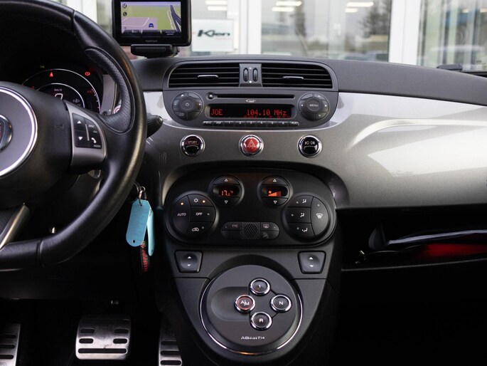 Binnenin word je verwelkomd door sportstoelen met lederen bekleding en rode accenten, een sportstuur met Abarth-logo en aluminium pedalen. Alles ademt performance. Dankzij onder andere navigatie, climate control en parkeersensoren is hij bovendien verrassend compleet uitgerust.