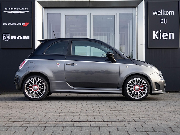 Het exterieur straalt sportiviteit uit met de kenmerkende Abarth bumpers, dubbele uitlaat, rode remklauwen en lichtmetalen velgen. De grijze lak in combinatie met de sportieve details geeft deze 500 precies de juiste balans tussen stijl en agressie.
