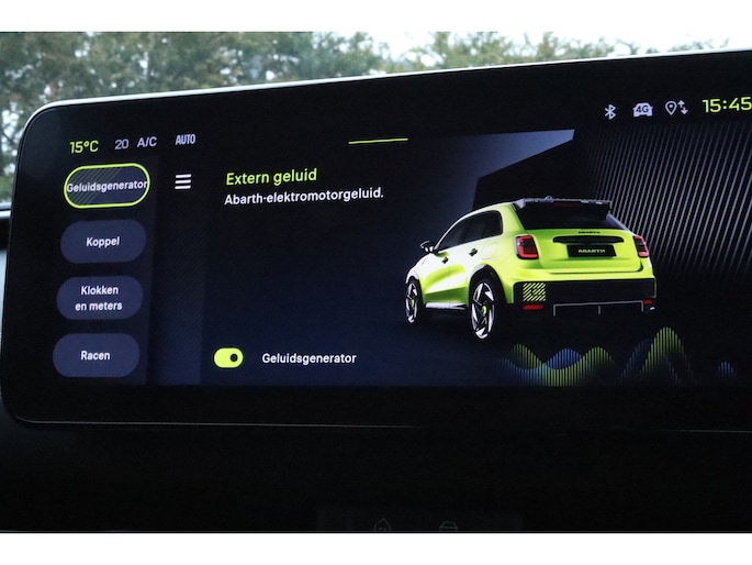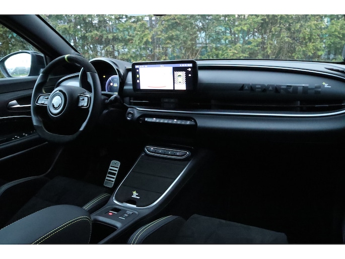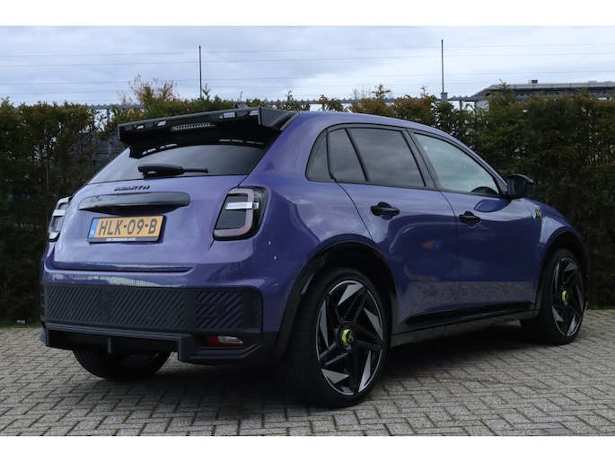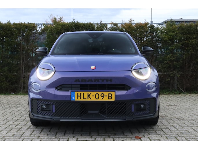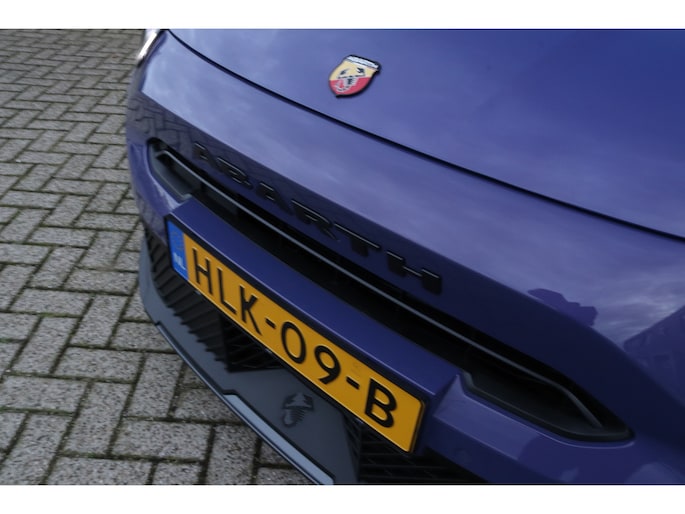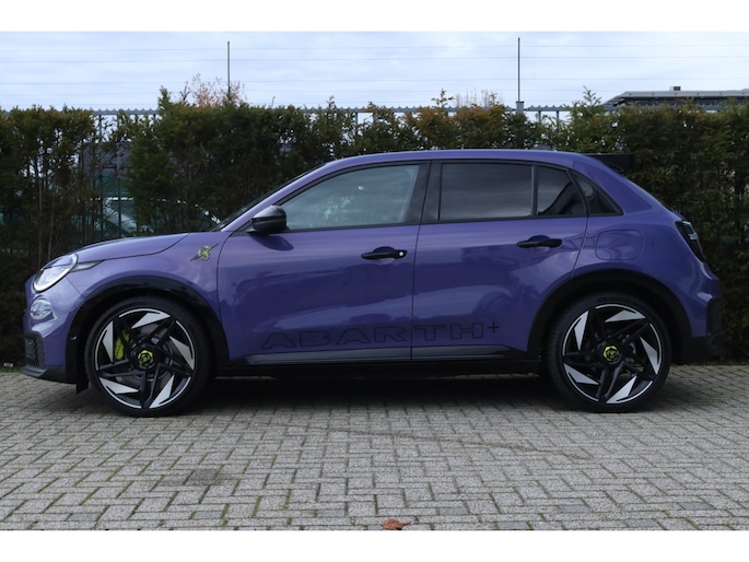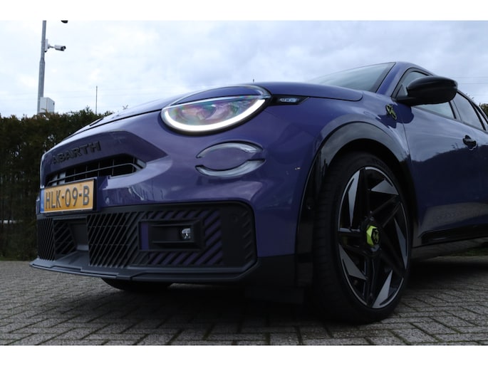 De acceleratie van de elektrische Abarth 600e is indrukwekkend. Dit exemplaar heeft 7090 kilometer gelopen, het bouwjaar is 2025. Milieuvriendelijk, stil en uitstekende rijprestaties: dat zijn de voordelen van de elektromotor. Een krachtige motor geeft deze auto zijn sportieve prestaties. Stoelverwarming hoort ook bij de uitrusting van deze auto. De achterklep opent automatisch met een druk op de knop. Handig als u met volle handen staat. Tot de uitrusting van deze Abarth behoren ook 20 inch lichtmetalen velgen, LED koplampen, extra getint glas, in delen neerklapbare achterbank, LED-achterlichten en snelheidsafhankelijke stuurbekrachtiging. Onder alle omstandigheden perfect zicht op wat zich achter de auto afspeelt: de achteruitrijcamera zorgt ervoor! Adaptive cruise control is veilig en comfortabel. De snelheidsregelaar houdt automatisch afstand tot het voertuig dat voor u rijdt. De speciale app verbindt met Connected Services, die de status van vitale functies bijhoudt en waarschuwt als u bijvoorbeeld moet tanken, de bandenspanning moet controleren of olie moet bijvullen. Het navigatiesysteem zorgt ervoor dat u snel en ontspannen op uw bestemming aankomt. Met de automatische airconditioning selecteert u de gewenste temperatuur. Het systeem doet de rest. Met draadloos opladen, DAB ontvangst, regensensor, keyless entry en automatisch dimmende binnenspiegel is deze Abarth helemaal compleet. Aan boord van deze Abarth houden verschillende geavanceerde systemen voor u de weg in de gaten. Ze waarschuwen u voor noodsituaties en kunnen in een aantal gevallen ook zelf ingrijpen. U rijdt ook veiliger omdat deze auto voor u de verkeersborden langs de weg kan lezen. De belangrijkste borden worden op uw instrumentarium geprojecteerd, zodat u ze niet kunt missen. Voorzien van het Lane-keeping systeem. Ofwel: blijf automatisch in je baan. Het systeem voor vermoeidheidsherkenning neemt het waar als uw concentratie verslapt en geeft u dan een waarschuwing. Verder is deze auto uitgerust met dodehoekdetectie, hill hold functie en autonoom remsysteem. Wilt u een proefrit maken met deze elektrische auto? Maak dan nu een afspraak.