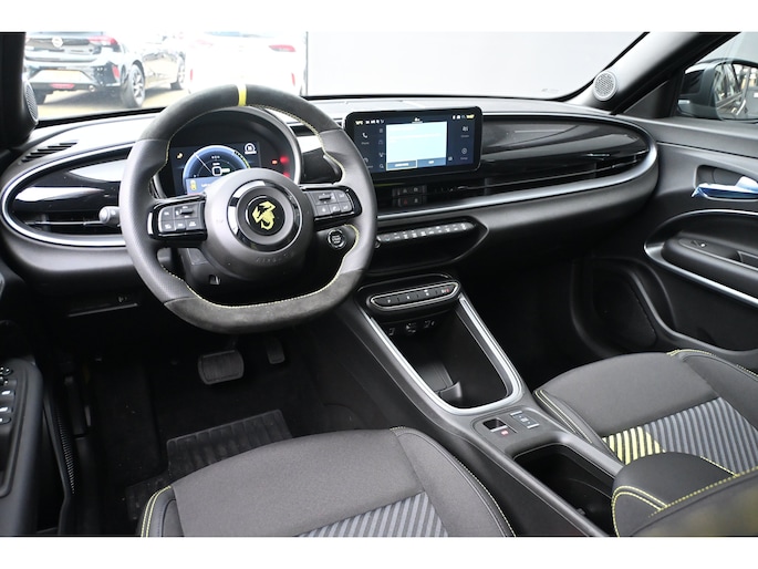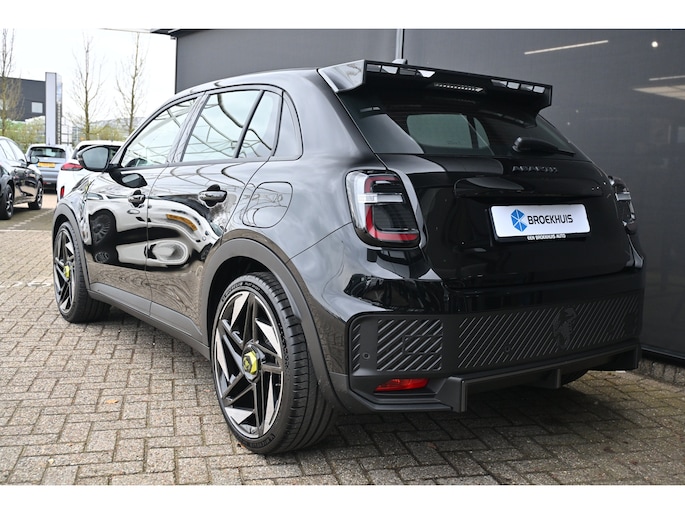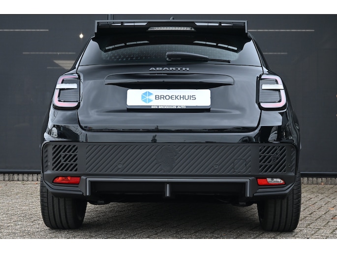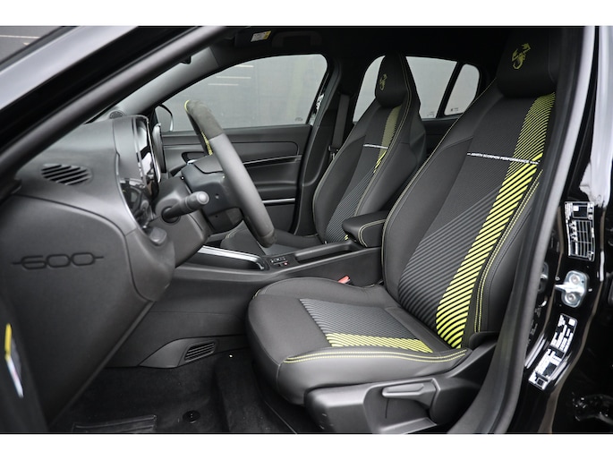 Hij is doordacht innovatief en duurzaam als geen ander: de elektrische Abarth 600e biedt met zijn elektrische aandrijving een ongekende rijervaring. De fluisterstille elektromotor zorgt voor een serene rijervaring. Een krachtige motor geeft deze auto zijn sportieve prestaties. De sportstoelen houden u en uw bijrijder goed op z'n plek tijdens het accelereren en bij het nemen van scherpe bochten. In deze Abarth profiteert u onder andere ook van: 20 inch lichtmetalen velgen, LED koplampen, in delen neerklapbare achterbank, LED-achterlichten en snelheidsafhankelijke stuurbekrachtiging. Met adaptive cruise control houdt deze auto automatisch afstand tot uw voorligger. De auto's van vandaag rijden niet alleen subliem, maar luisteren ook goed. Via een speciale app kunt u overal diverse functies controleren en de status van de auto inzien. De vele zenders die u heeft met DAB-radio worden fantastisch weergegeven via het A-klasse audio-installatiesysteem. Tot de standaard uitrusting van deze auto hoort ook automatische airconditioning. U kunt bij het inparkeren natuurlijk niet aan alle kanten ogen hebben. Daarom is deze Abarth 600e voorzien van parkeersensoren! De uitrusting van deze Abarth is met regensensor, automatisch dimmende binnenspiegel en centrale deurvergrendeling met afstandsbediening behoorlijk compleet. Deze Abarth is voorzien van verschillende intelligente veiligheidsvoorzieningen. Ze kijken tijdens het rijden als het ware met u mee, ze signaleren potentieel gevaarlijke situaties en in een aantal gevallen kunnen ze ook ingrijpen. Een belangrijke bijdrage aan de veiligheid onderweg levert de verkeersbord-detectie. Voorzien van het Lane-keeping systeem. Ofwel: blijf automatisch in je baan. Een belangrijke bijdrage aan de veiligheid in deze auto is de vermoeidheidsherkenning, die waarneemt wanneer de bestuurder tekenen van vermoeidheid vertoont. De auto is ook uitgerust met hill hold functie en autonoom remsysteem. Nergens vindt u zoveel oplaadpalen als hier, bij ons. Alle reden om te kiezen voor elektrisch rijden. Overtuig uzelf met een proefrit en maak vandaag nog een afspraak!