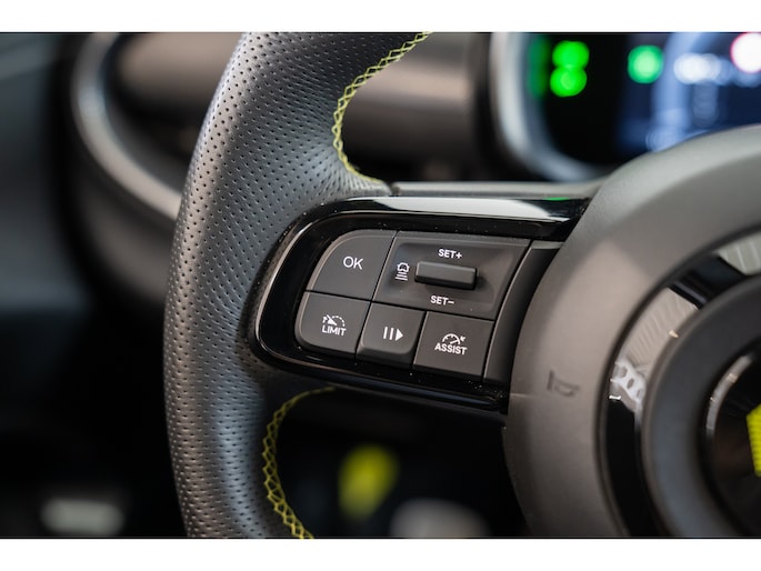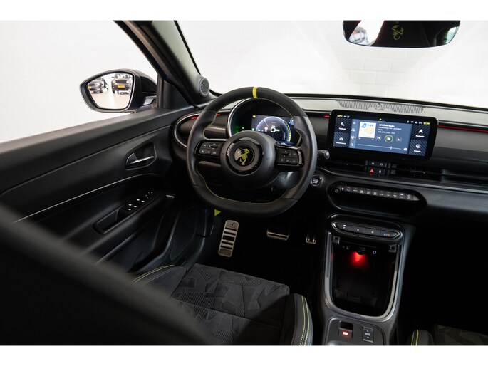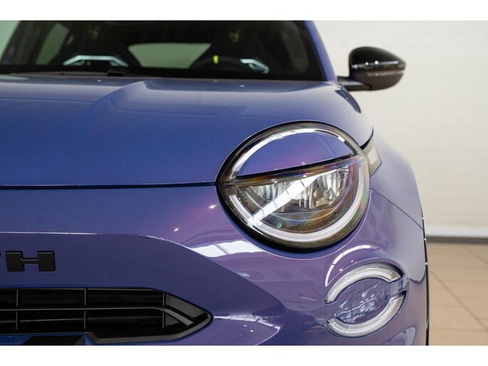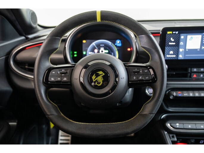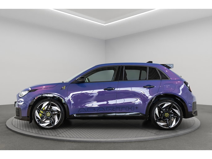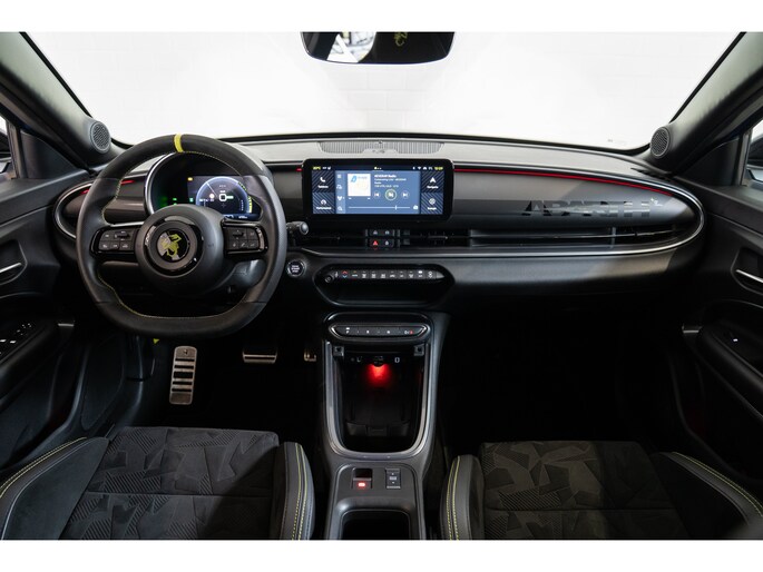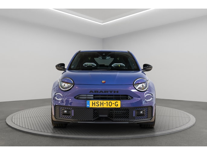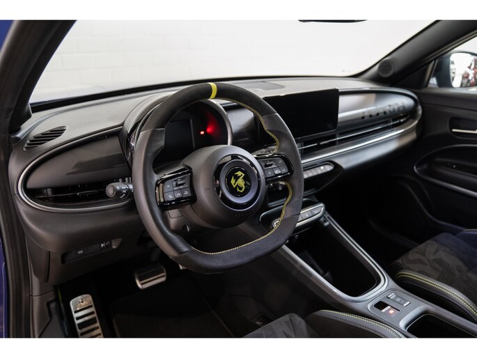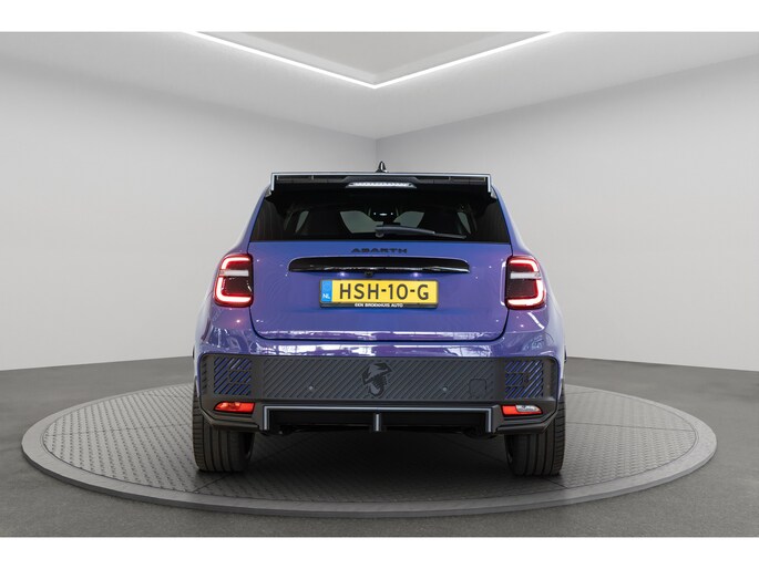 Een optimaal rijbereik, geen emissies en probleemloze techniek. Met de Abarth 600e haalt u een elektrische auto van topklasse in huis. CO2-uitstoot? Met de elektromotor rijdt u stil en schoon! Hoewel de auto uit 2025 komt, heeft hij maar 6703 kilometer gereden. De krachtige motor geeft deze Abarth uitstekende prestaties. Een weldaad voor u en uw bijrijder: deze Abarth 600e heeft verwarmbare voorstoelen. In deze uitvoering is de 600e voorzien van mooie, maar ook functionele sportstoelen. De achterklep opent automatisch met een druk op de knop. Handig als u met volle handen staat. De uitmonstering van deze auto wordt gecompleteerd door onder meer 20 inch lichtmetalen velgen, LED koplampen, extra getint glas, in delen neerklapbare achterbank, LED-achterlichten en snelheidsafhankelijke stuurbekrachtiging. De achteruitrijcamera levert eersteklas parkeerservice. U weet precies hoeveel ruimte u nog heeft, in beeld en geluid. Adaptive cruise control is veilig en comfortabel. De snelheidsregelaar houdt automatisch afstand tot het voertuig dat voor u rijdt. Waar u zelf ook bent, u staat altijd in contact met de auto via de app op uw smartphone. Zo controleert u uiteenlopende functies, ook op afstand. In deze auto wordt u elke rit opnieuw bijgestaan door een gebruiksvriendelijk navigatiesysteem, terwijl u luistert naar het glasheldere geluid van het audio-installatiesysteem met DAB-radio. Telefoonaccu in het rood? Laad 'm simpel op met de draadloze oplaadmogelijkheid voor telefoons. Natuurlijk behoren automatische airconditioning, regensensor, keyless entry en automatisch dimmende binnenspiegel ook tot de uitrusting van deze complete auto. Pragmatisch en veilig als deze auto is, beschikt hij over diverse veiligheidssystemen. Verkeersborddetectie herkent tijdelijke en permanente verkeersborden langs en boven de weg. Het Lane-keeping systeem zorgt dat u mooi binnen de lijntjes blijft. Ongemerkt buiten de rijstrook komen is er niet meer bij. Om te voorkomen dat u tijdens lange ritten achter het stuur in slaap valt, is deze auto voorzien van vermoeidheidsherkenning. In deze Abarth vinden we verder een dodehoekdetectie, hill hold functie en autonoom remsysteem. Maak nu een afspraak om de sensatie van elektrisch rijden te ervaren. Proefrit? Even bellen!