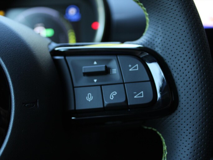 - Stuurwiel – wrapped Alcantara in Black + Lime met vynil inzetstukken