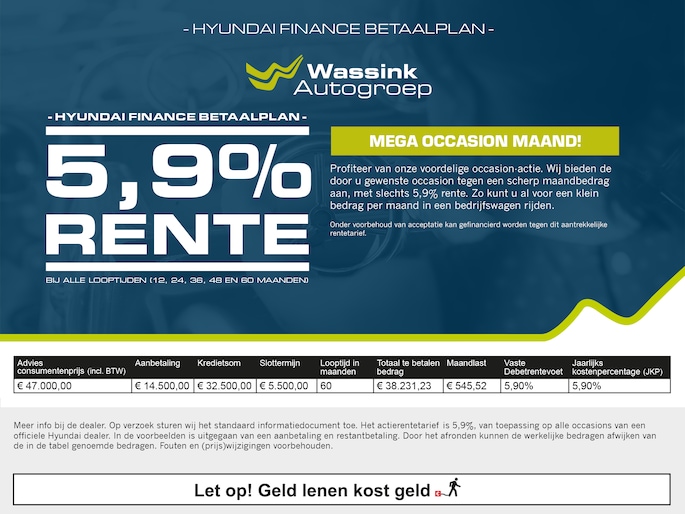 Vraag onze verkoopadviseurs naar de voorwaarden of kijk op onze website www.wassinkautogroep.nl voor meer informatie.