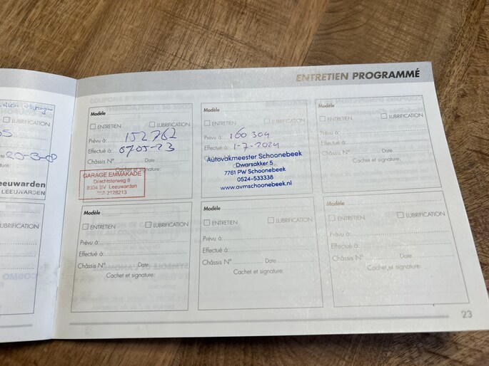 Onderhoudsboekjes: Aanwezig