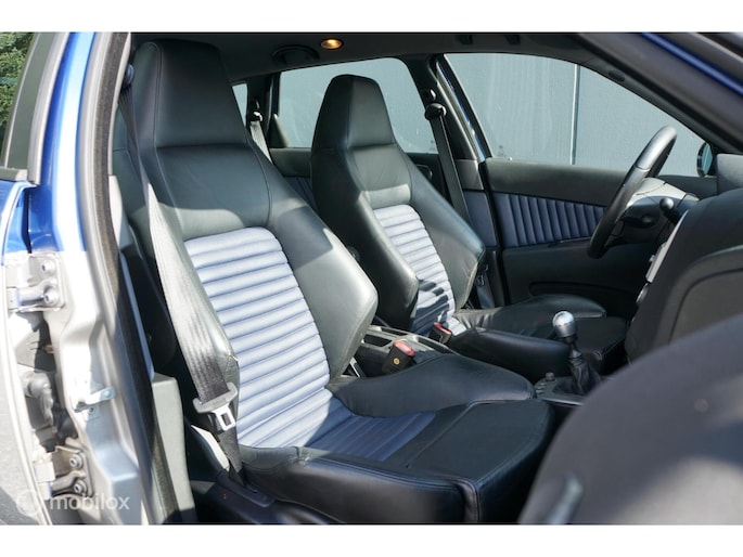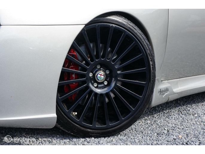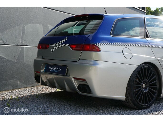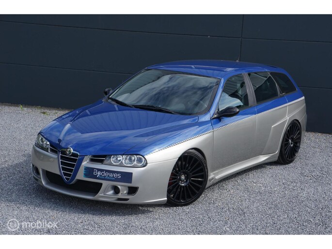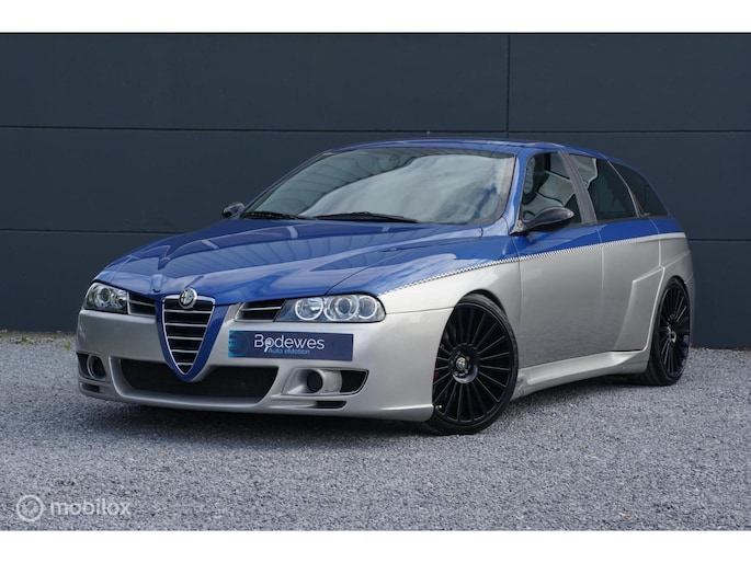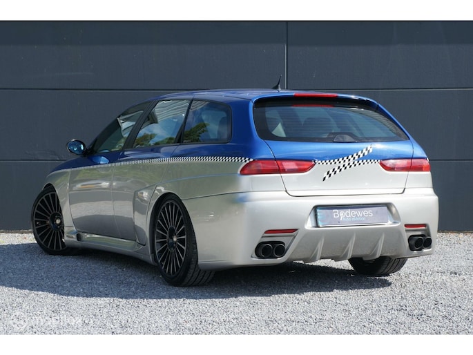 Deze Alfa Romeo 156 GTA Sportswagon is niet zomaar een GTA Sportswagon, en dat is overduidelijk. De in 2002 in Zwitserland nieuw geleverde Alfa Romeo (welke toen naar alle waarschijnlijkheid, is geleverd aan een zeer bekende Duitse F1 coureur, dit proberen we nog definitief bevestigd te krijgen!) werd in 2004 ingeruild en kort daarna verkocht aan de tweede Zwitserse eigenaar. Die op zijn beurt in 2005 besloot dat hij de eerste 156 GTA Sportwagon wou hebben met een Autodelta (UK) body pakket. Zo geschiede, de onderdelen en producten werden besteld, enkel was er één uitdaging, het front van dit Autodelta pakket was bedoeld voor de facelift versie van de 156 sedan. De Sportswagon was echter nooit als facelift model geleverd. Dus..... dan ook maar een facelift front erop. Carrosserie werker en spuiter A. Grasso in Fullinsdorf ging aan het werk en na flink wat arbeid stond er de auto zoals u hem vandaag op onze site ziet staan. Uiteraard bleef het hier niet bij en is ook het veerpakket van de auto veranderd naar een schroefset van KW, is er een custom uitlaat van voor naar achteren geplaatst en werd de auto op zwarte Mille Miglia velgen gezet en de motor nog extra gekieteld.
