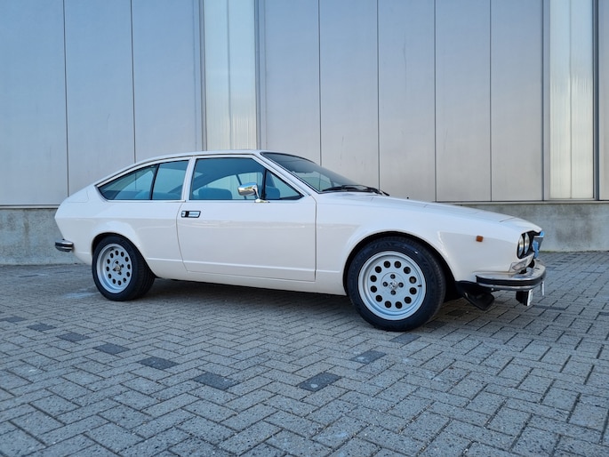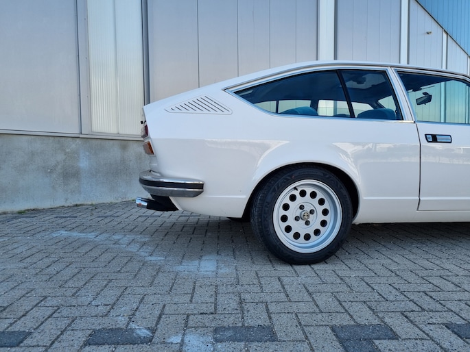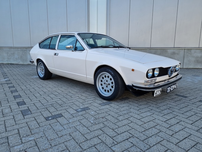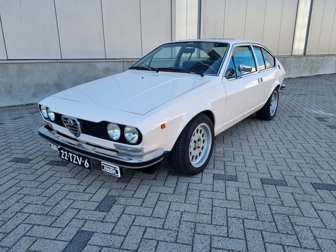 Alfa Romeo Alfetta GT 1.6, de wonderschone schepping van Giugiaro. Dit uitzonderlijk fraaie exemplaar komt uit 1980 en heeft 81550 kilometers op de 5-cijferige teller.