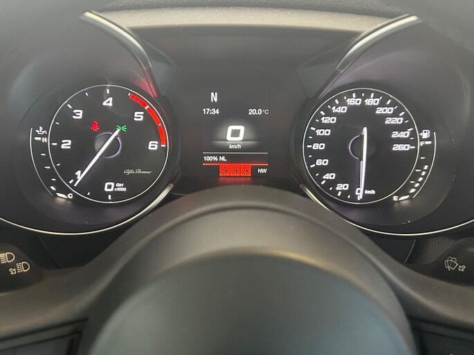 Een optie die de veiligheid verhoogt, is de bediening vanaf het stuur van het audio-installatiesysteem (met DAB-radio!) en het navigatiesysteem. De automatische airconditioning zorgt voor een behaaglijk klimaat in de auto. Inparkeren en uitparkeren kost geen enkele moeite dankzij de parkeersensoren. Natuurlijk is een complete auto als deze ook voorzien van sensoren die de omgeving in de gaten houden. Deze Alfa Romeo heeft niet alleen een automatisch inschakelbare verlichting aan boord, maar ook een regensensor. De cruise control betekent gemak, comfort en zuinig rijden.