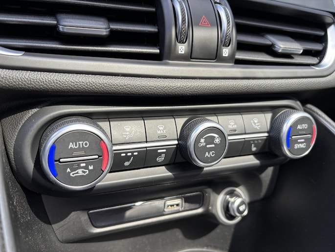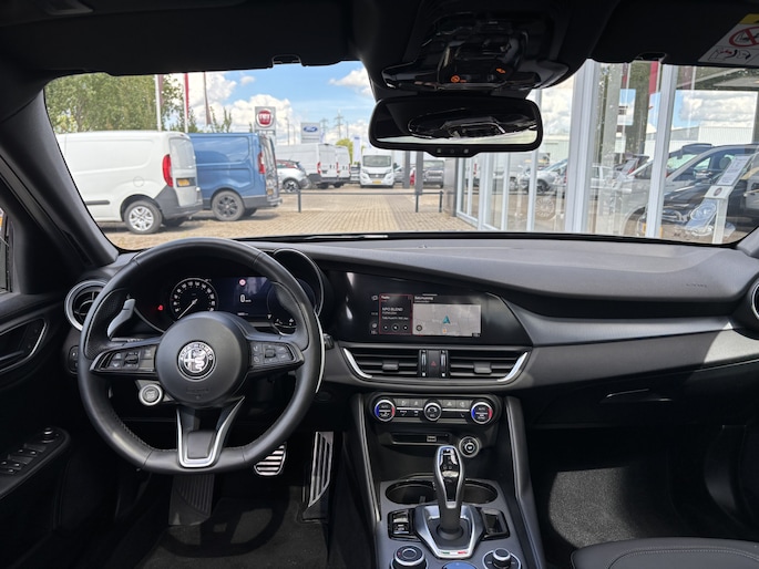 Het digitale dashboard geeft een nauwkeurig en makkelijk overzicht van alle belangrijke functies. Een handige optie is de achteruitrijcamera. Achteruitrijden, inparkeren en manoeuvreren gaat gemakkelijker dan ooit. Adaptive cruise control houdt de ingestelde snelheid vast en houdt afstand tot het voertuig voor u. Loopt het verkeer onderweg vast, schakel dan de file assistent in en laat het systeem zorgen voor de juiste afstand bij stilstaan en rijden. Zoals u van zo'n jonge auto mag verwachten, zijn hier ook de geavanceerde remote services aanwezig. Simpelweg met een app op uw smartphone controleert u op afstand de status van de auto en bedient u diverse functies. U bent in deze Alfa Romeo ook voorzien van full map navigatiesysteem, automatische airconditioning, sportstuur met schakelpaddels, draadloos opladen, DAB ontvangst en regensensor.