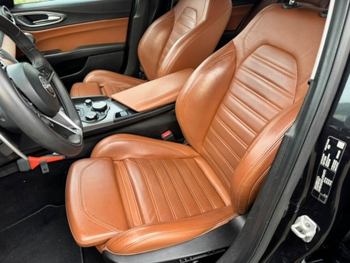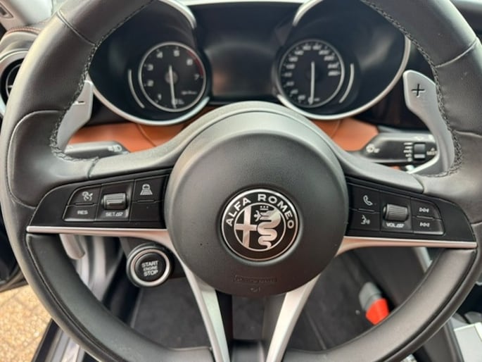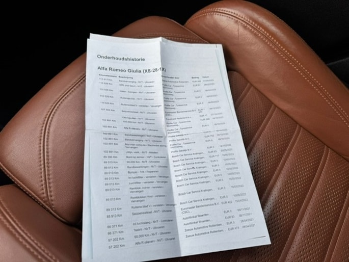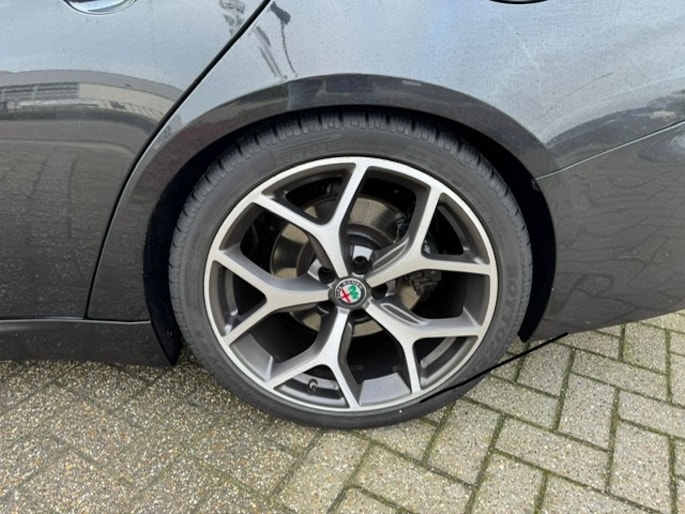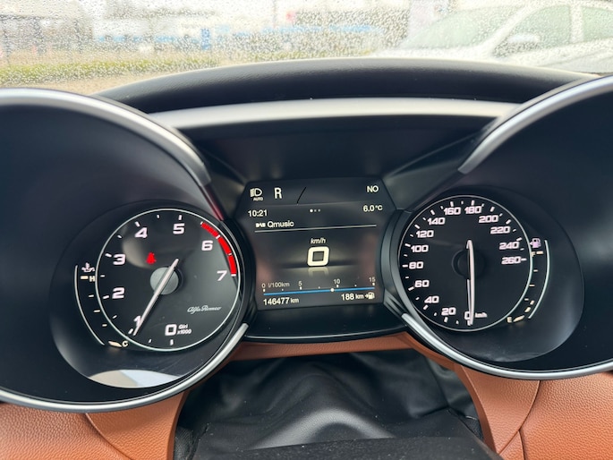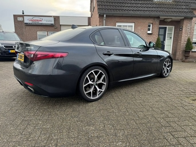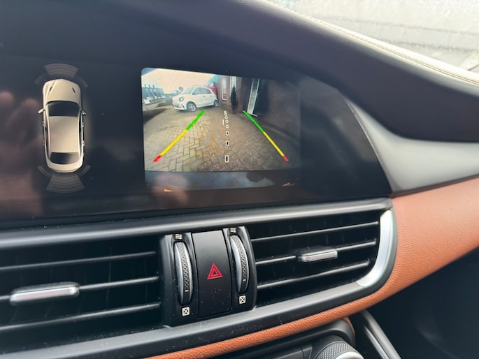Zijn dynamische uiterlijk maakt al direct duidelijk wat voor rijervaring u van deze Alfa Romeo Giulia mag verwachten: pure sportiviteit. Met zijn benzinemotor en automatische transmissie is dit een prima auto voor nog vele kilometers. Het lederen interieur voegt stijl en allure toe. U past de stoelen moeiteloos aan, ze zijn elektrisch in te stellen en hebben bovendien een geheugen. Beknibbelen op comfort is er niet bij met deze Alfa Romeo Giulia. Hij is zelfs voorzien van een verwarmd stuurwiel! Xenonverlichting zorgt voor een heldere witblauwe lichtkleur en een scherp lichtbeeld. In deze Alfa Romeo profiteert u onder andere ook van: 19 inch lichtmetalen velgen, adaptief dempingsysteem, getint glas, in delen neerklapbare achterbank, LED-achterlichten en verstelbare lendensteunen.
