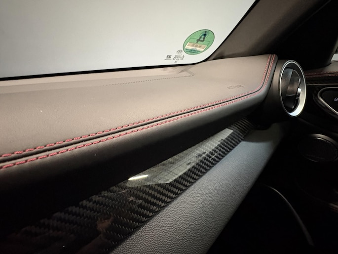 - Carbon & leather trim on dashboard, carbon fiber trim on doors, carbon fiber trim on center console and leather trim on top of gear shift