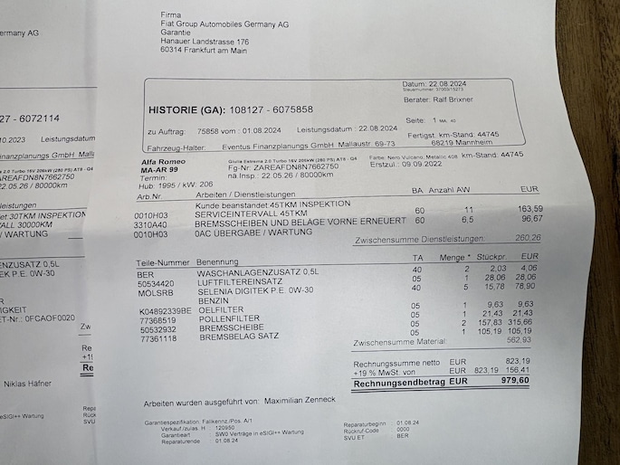 - Onderhoudsboekje (fysiek)