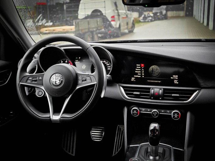 Nieuw binnen! Deze Alfa Romeo Giulia 2.0T Super met achterwielaandrijving, flippers aan het stuur en het Alfa DNA-systeem. Een echte rijdersauto.