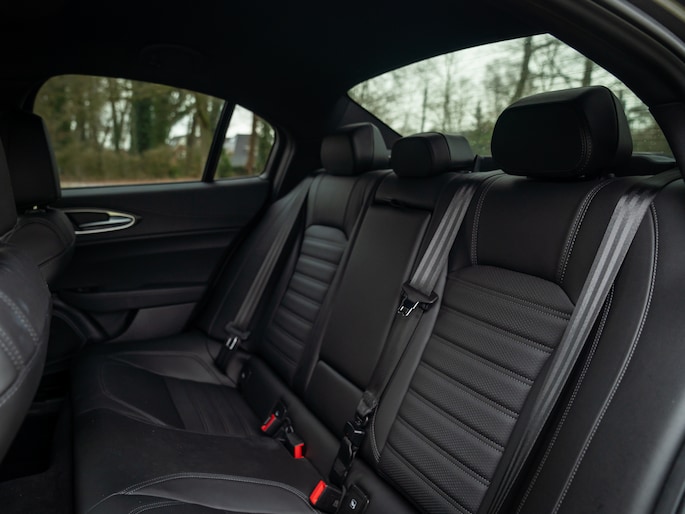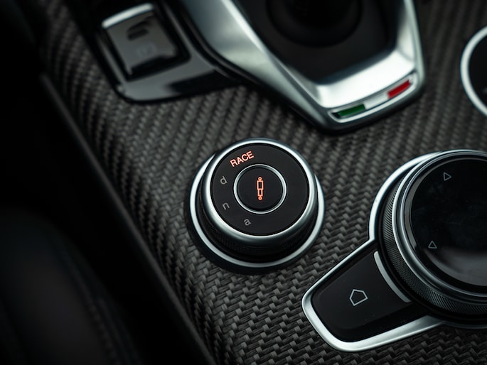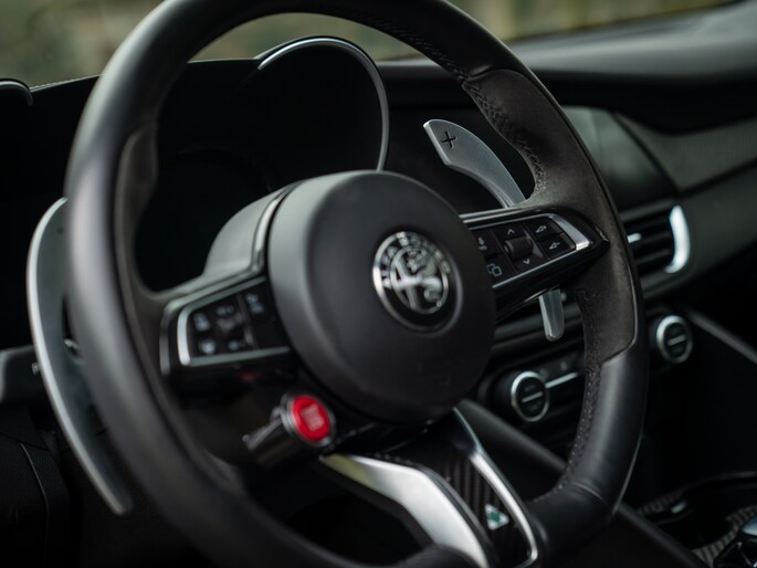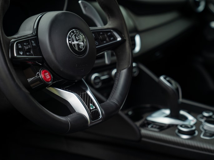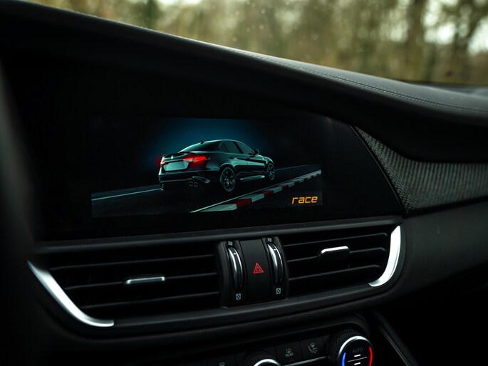 Echter, achterblijven op de moderne technologie, ho maar. Onze Alfa Romeo Giulia Quadrifoglio is van alle technische gemakken voorzien, plus een beetje meer dan dat. Het aanwezige Driver Assistance Pack onderschrijft dit als geen ander. Daarnaast hebben de Italianen gelukkig ruimte gelaten voor ‘ouderwetse’ spielerei, zoals een uitlaatgeluid dat door merg en been gaat. Het feit dat de sound van de 6-cilinder boven die van het (overigens geweldig klinkende) Harman Kardon audiosysteem wordt verheven, zegt toch genoeg? Een melodie gemaakt door 520 daverende paarden; die gaat u niet op Apple CarPlay terugvinden!