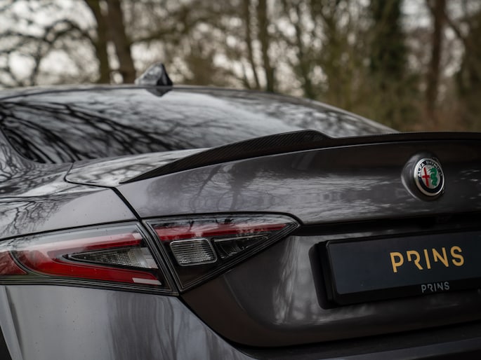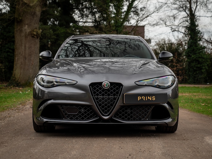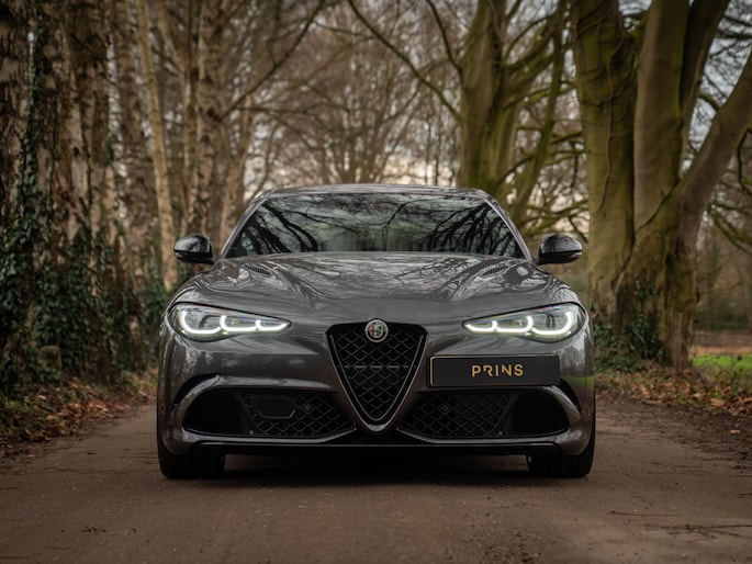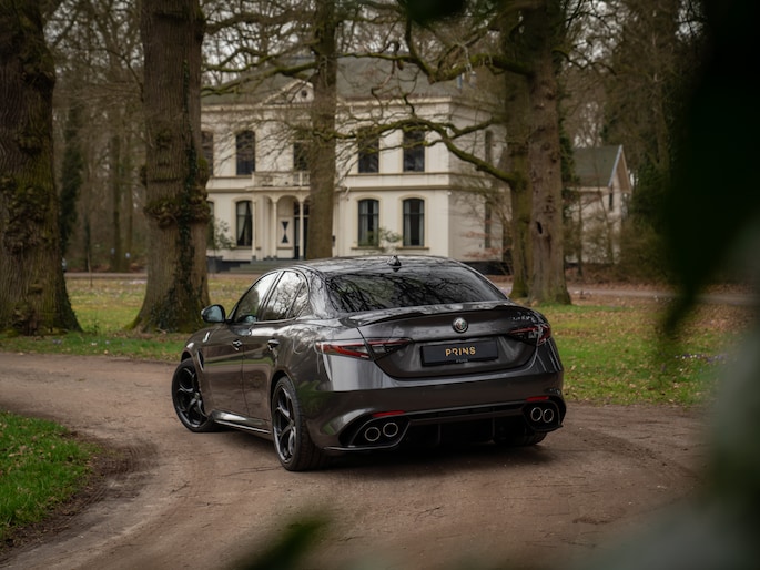 Sportsedans met een ziel worden niet ‘zomaar’ met uitsterven bedreigd. Nu de Alfa Romeo Giulia Quadrifoglio officieel uit productie is gehaald, zijn ze definitief ter ziele gegaan. Lang kunnen we daar niet treurig over zijn, want… Zie hier een jonge Alfa Giulia Q: de laatste der Mohikanen! Compleet met de meest recente specificatie en door ons nieuw geleverd aan zijn 1e en enige eigenaar. Compleet met Harman/Kardon audio, adaptieve cruise control en Apple CarPlay. En hoe mooi is het dan dat we dit alles in een Grigio Vesuvio carrosserie hebben kunnen gieten? Leve de sportsedan met bezieling!