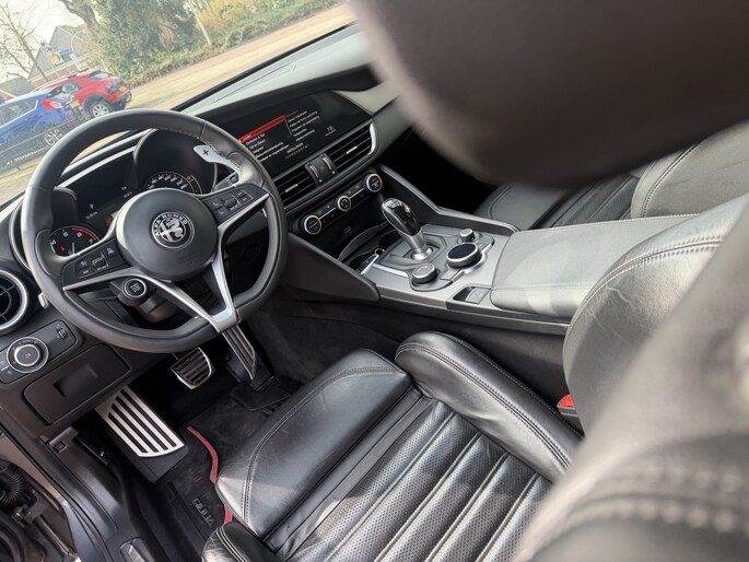 Nieuw op voorraad! Bijzonder nette Alfa Romeo Giulia 2.0T 280 PK AWD Veloce. Auto is van binnen en buiten in prachtige ( liefhebbers ) staat en altijd goed onderhouden! Onderhoud gehad bij 104.972 KM. Historie en 2 sleutels aanwezig! Uitgerust met alle denkbare opties zoals o.a; 19'' Lm-velgen, Rode Remklauwen, Adaptive Cruise-Control, Climate-Control, Stoelverwarming, Stuurwiel verwarmd, Achteruitrijcamera, Bluetooth Telefoon-Media, Keyless Entry - Start, Schakelmogelijkheid stuurwiel, Navigatiesysteem, Parkeersensoren voor en achter, Bi-Xenon koplampen, LED achterlichten, Start-stop Systeem, Lederen sportstoelen, Elektrisch verstelbare voorstoelen ( bestuurder met geheugen ), DNA-Mode, Lane-Assist, Side-Assist, Wegklapbare achterbank, Etc. Etc.